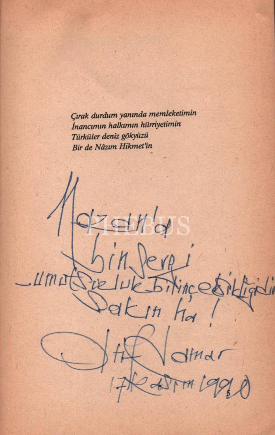 İthaf, "Hazan´a bin sevgi - Umutsuzluk bilinç eksikliğidir sakın ha! " şeklindedir.