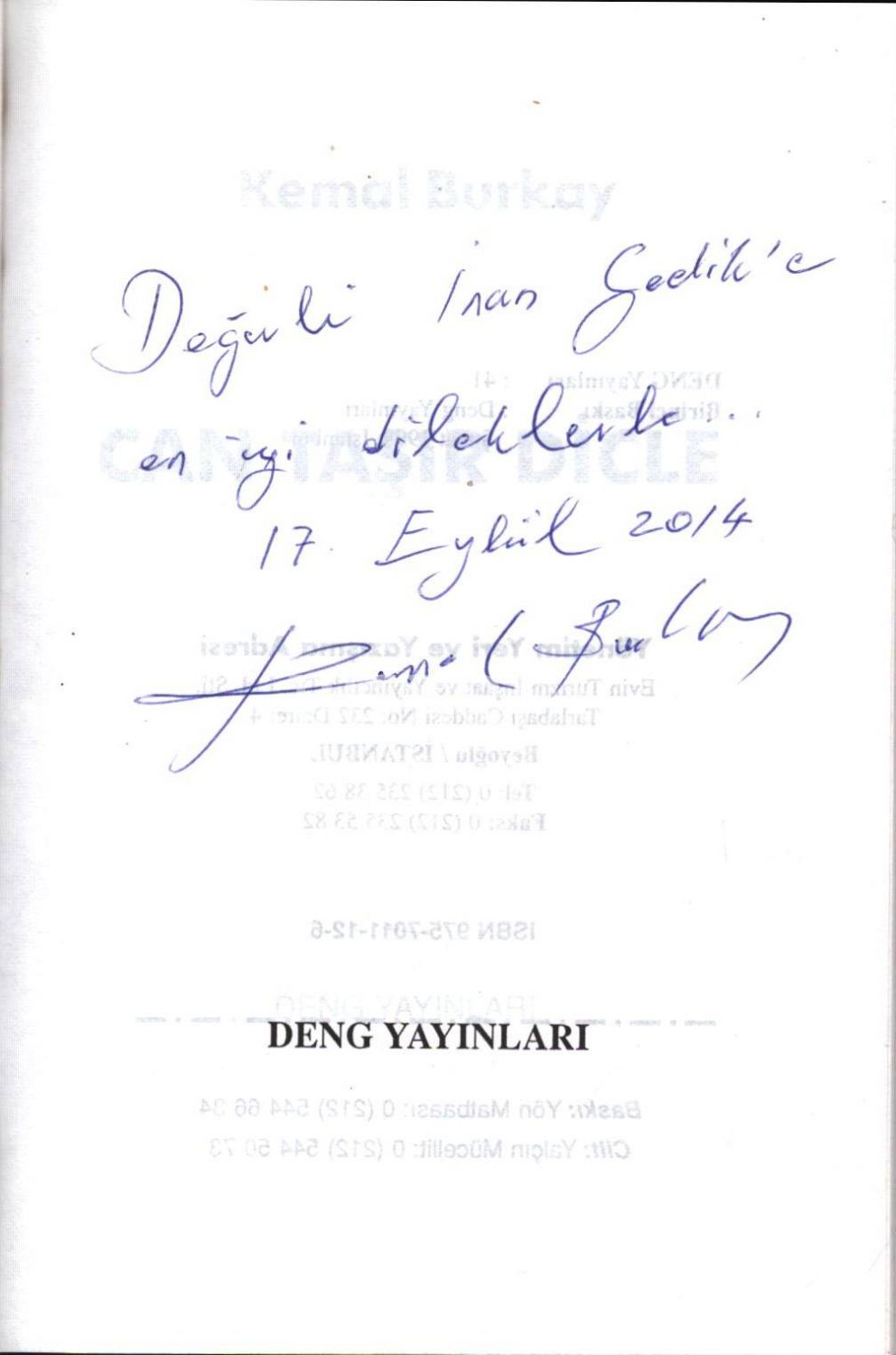 CAN TAŞIR DİCLE, Kemal Burkay, 1998, Deng Yayınları, 102 sayfa, 14x20 cm, İTHAFLI VE İMZALI...