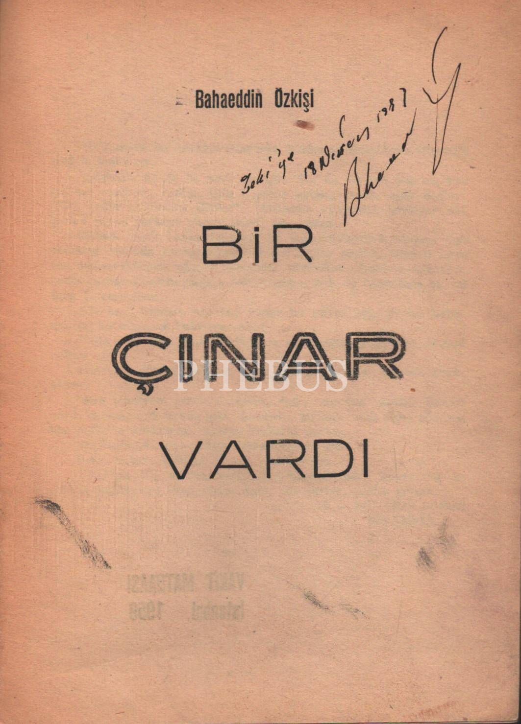BİR ÇINAR VARDI, Bahaeddin Özkişi, Vakıt Matbaası, İstanbul - 1959, 51 sayfa, 14x19 cm, İTHAFLI VE İMZALI...