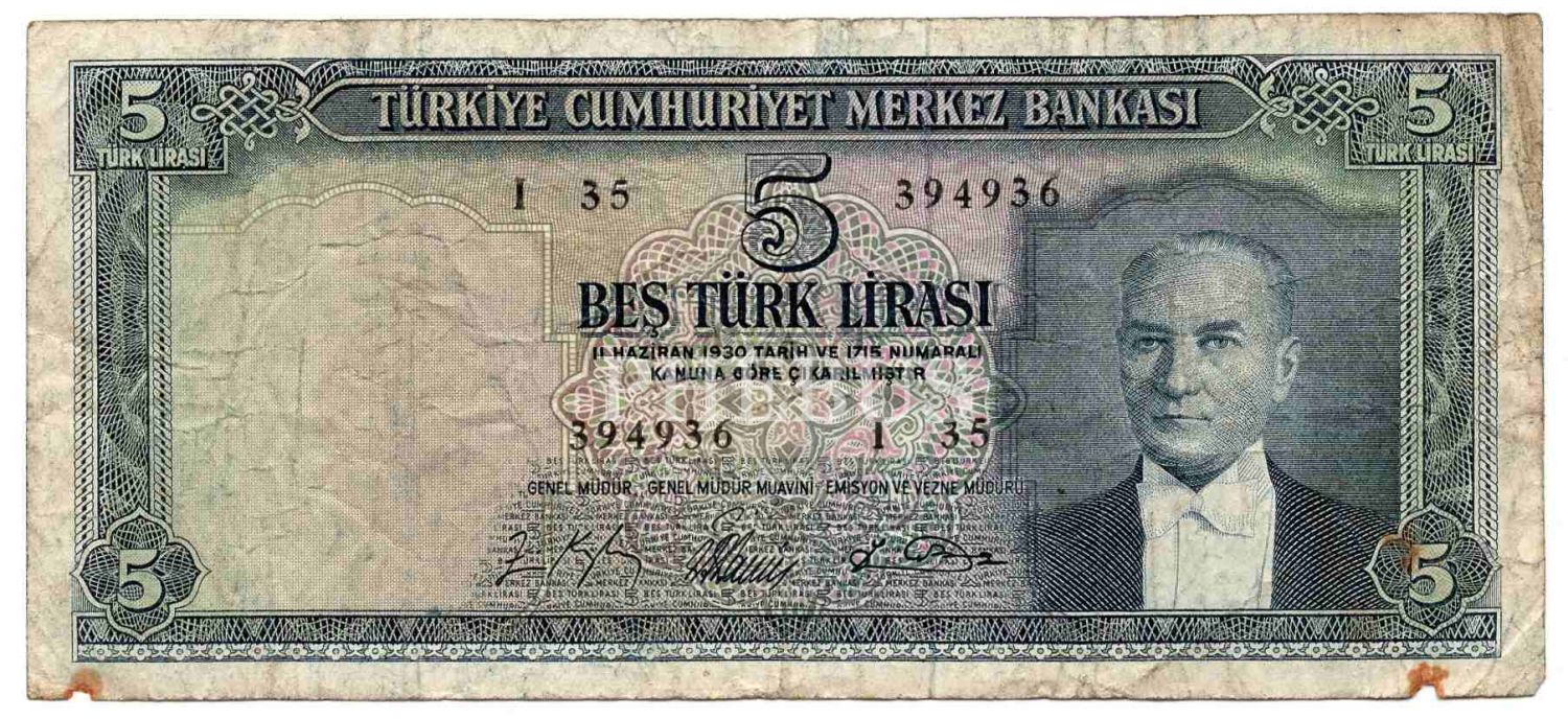 5. Emisyon 5- 10 - 50 - 500 lira 4 adet lot, Haliyle - Temiz+