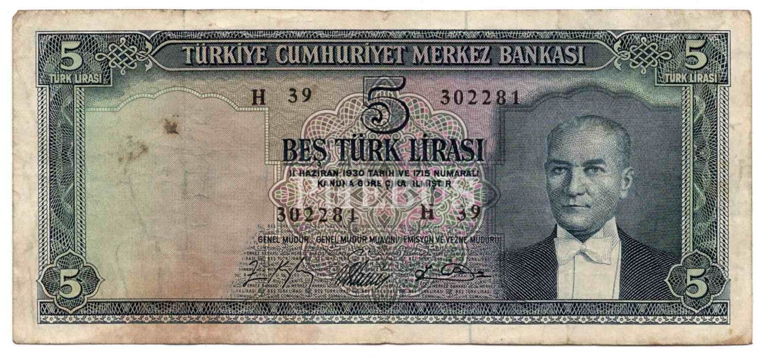 5. Emisyon 3 adet 5 Lira, Haliyle - Temiz+