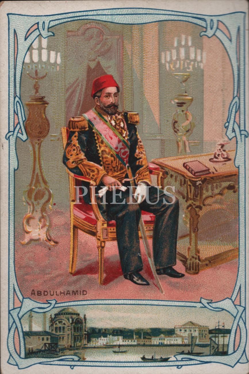 Osmanlı İmparatorluğu´nun 34. padişahı II. Abdülhamid görselli Fransızca çikolata kartı, La Grande Trappe, 7x11 cm
