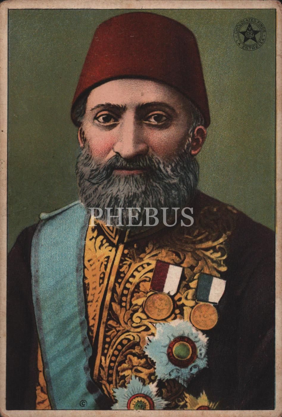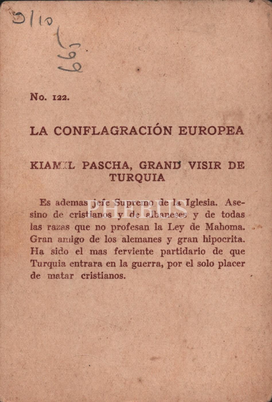 Sadrazam Kıbrıslı Mehmet Kâmil Paşa görselli Fransızca çikolata kartı, Chocolates Fınos La Estrella, 8x12 cm