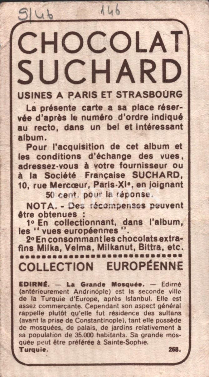 Edirne Selimiye Camii görselli Fransızca çikolata kartı, Foto Rap, Chocolat Suchard, 5x10 cm