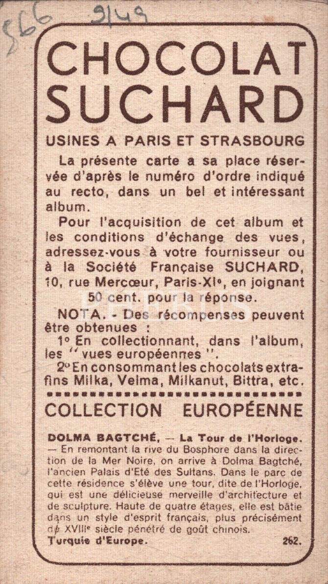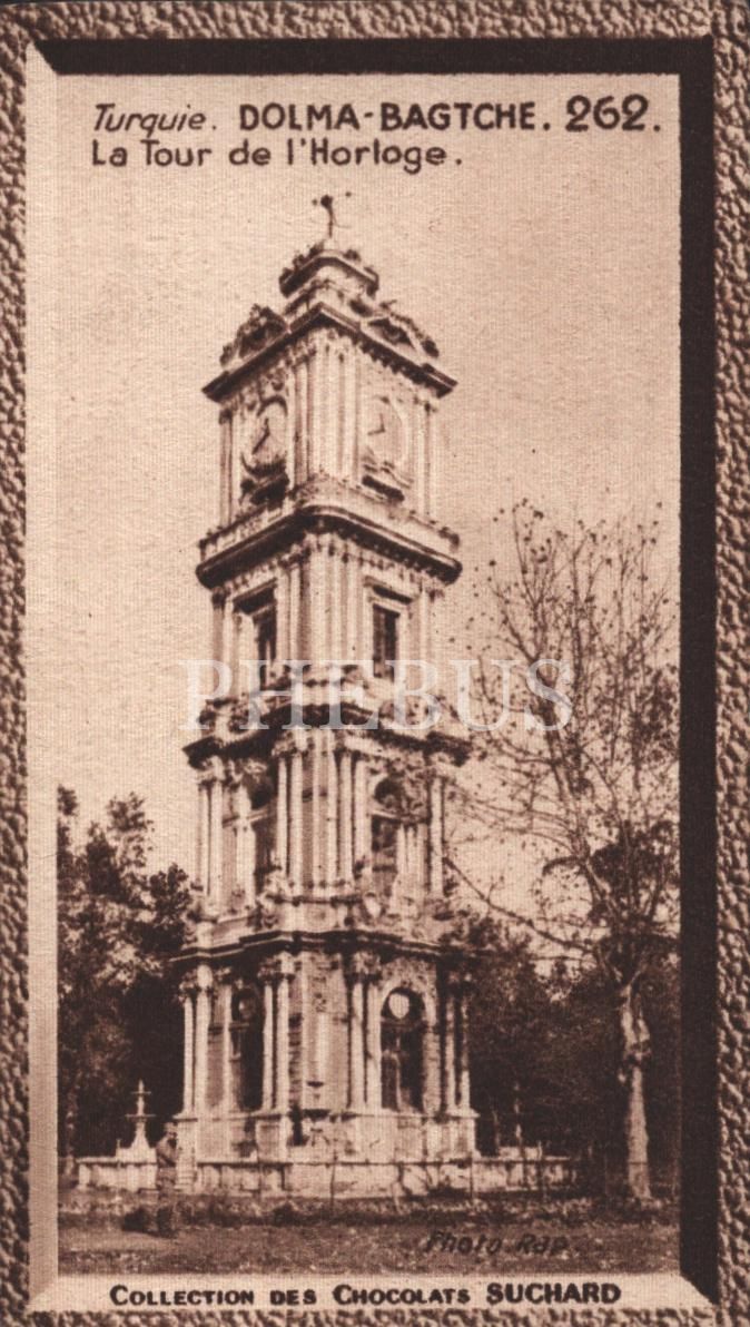 Dolmabahçe Saat Kulesi görselli Fransızca çikolata kartı, Foto Rap, Chocolat Suchard, 5x10 cm