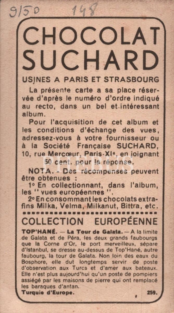 Galata Kulesi görselli Fransızca çikolata kartı, Foto Rap, Chocolat Suchard, 5x10 cm