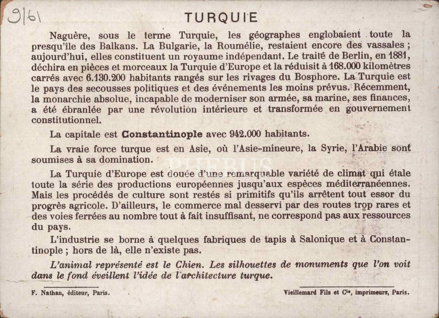 Cami silüeti, kurt ve sarıklı beyfendi "A travers le monde Turquıe [dünya çapında Türkiye] görselli kart, ed. F. Nathan, Paris, 9x12 cm