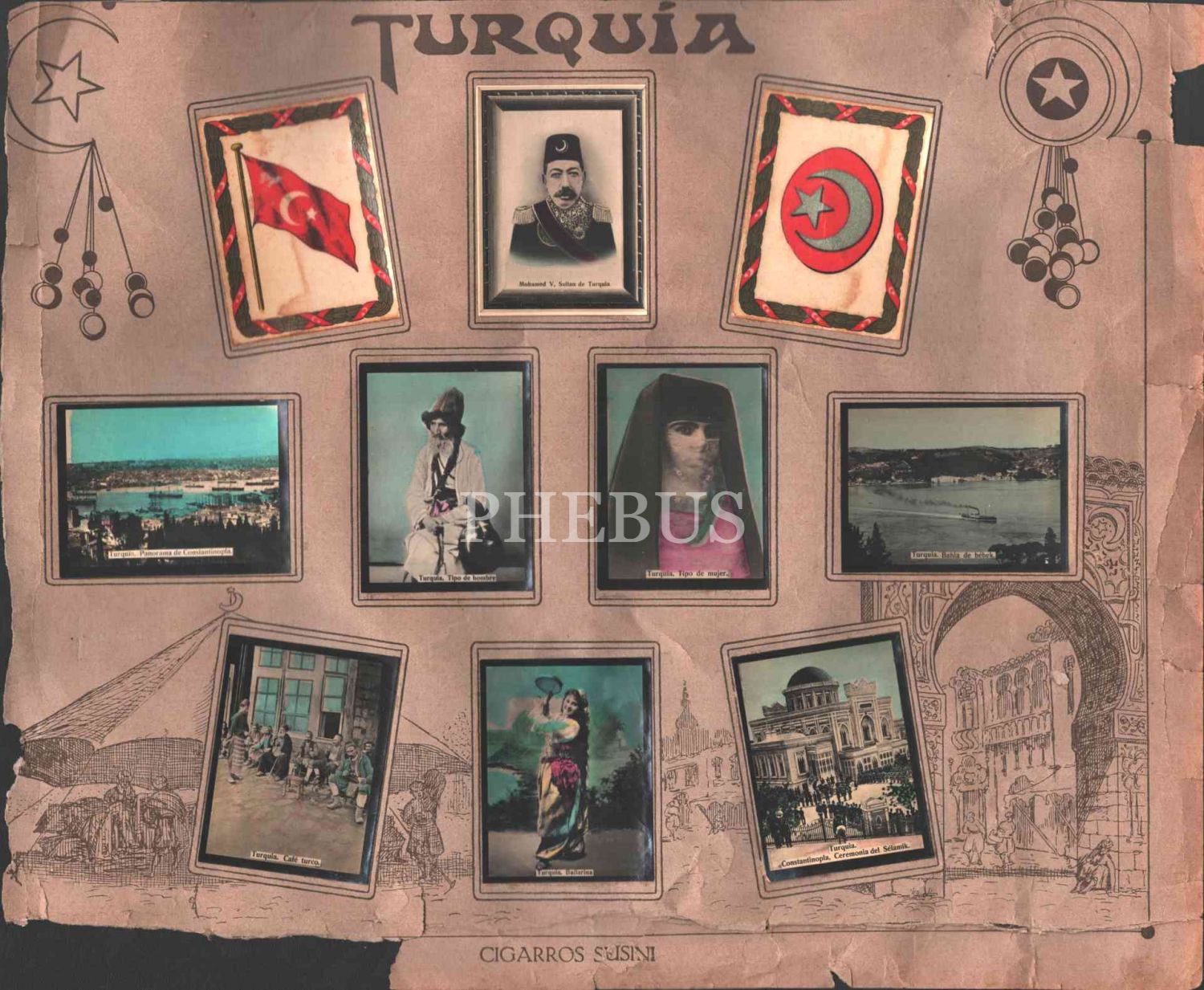 Türkiye temalı pano halinde 10 adet puro kartı, 28x34 cm