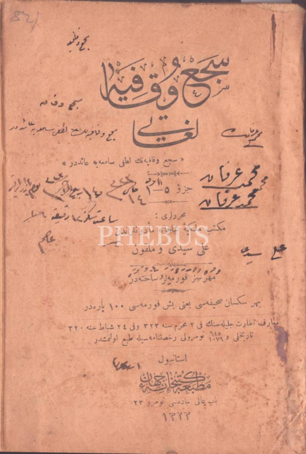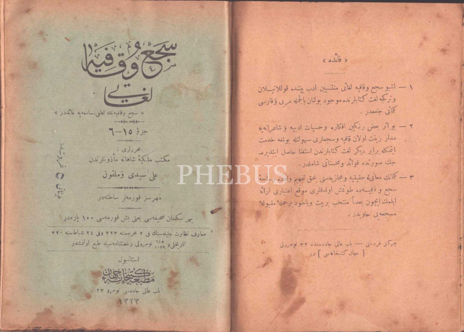 SECİ´ VE KÂFİYE LÜGÂTİ (1 il´a 15. Kısım), Ali Seydi ve Melkon, Matbaa ve Kütübhane-i Cihan, İstanbul 1323, 240 s., 13x18 cm