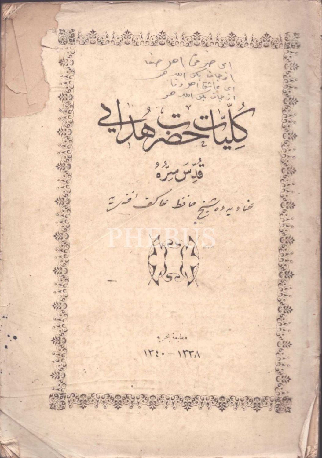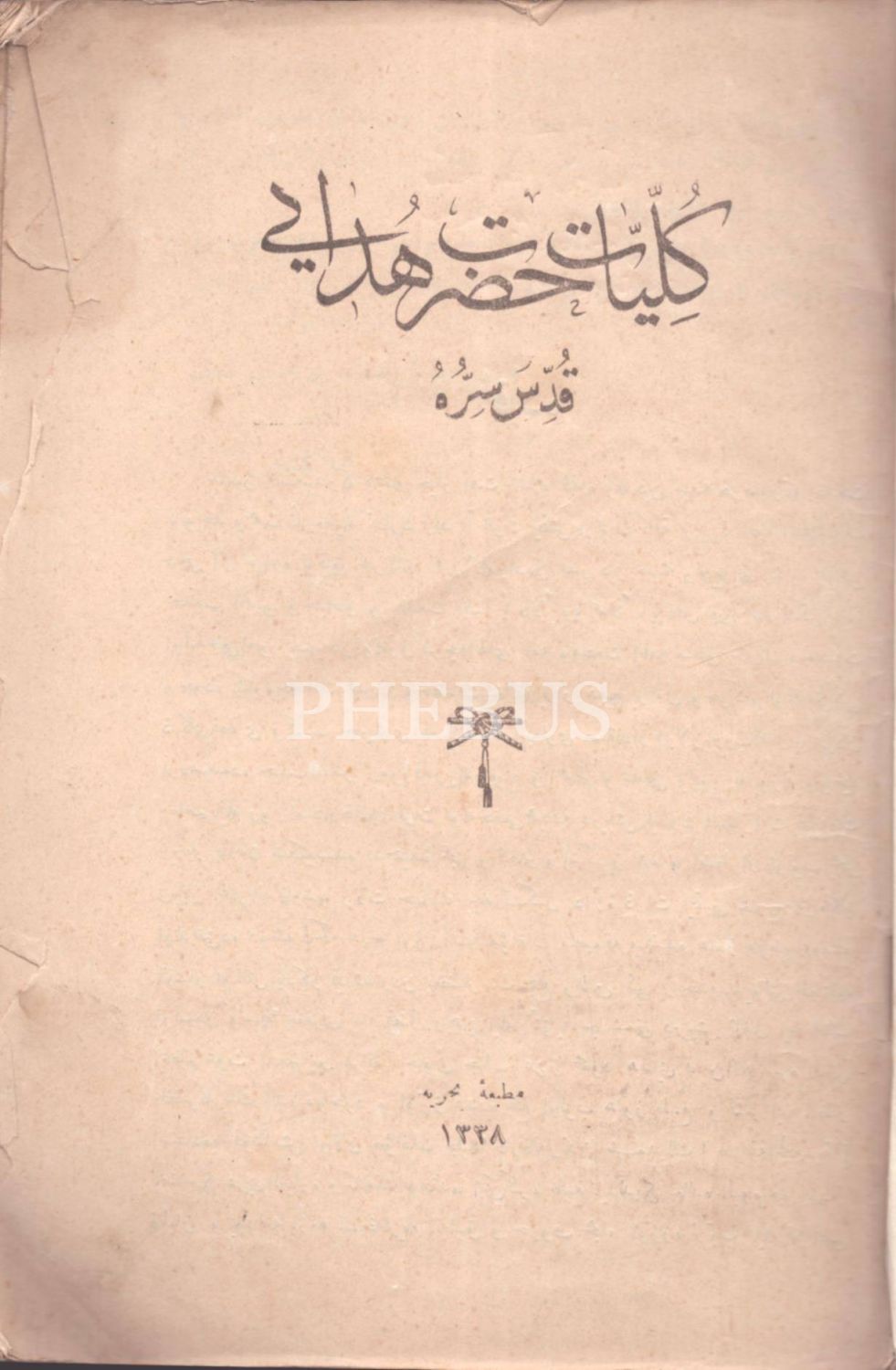 KÜLLİYYÂT-I HAZRET-İ HÜDÂYÎ, Matbaa-i Bahriye, 1338, 173 s., 17x24 cm
