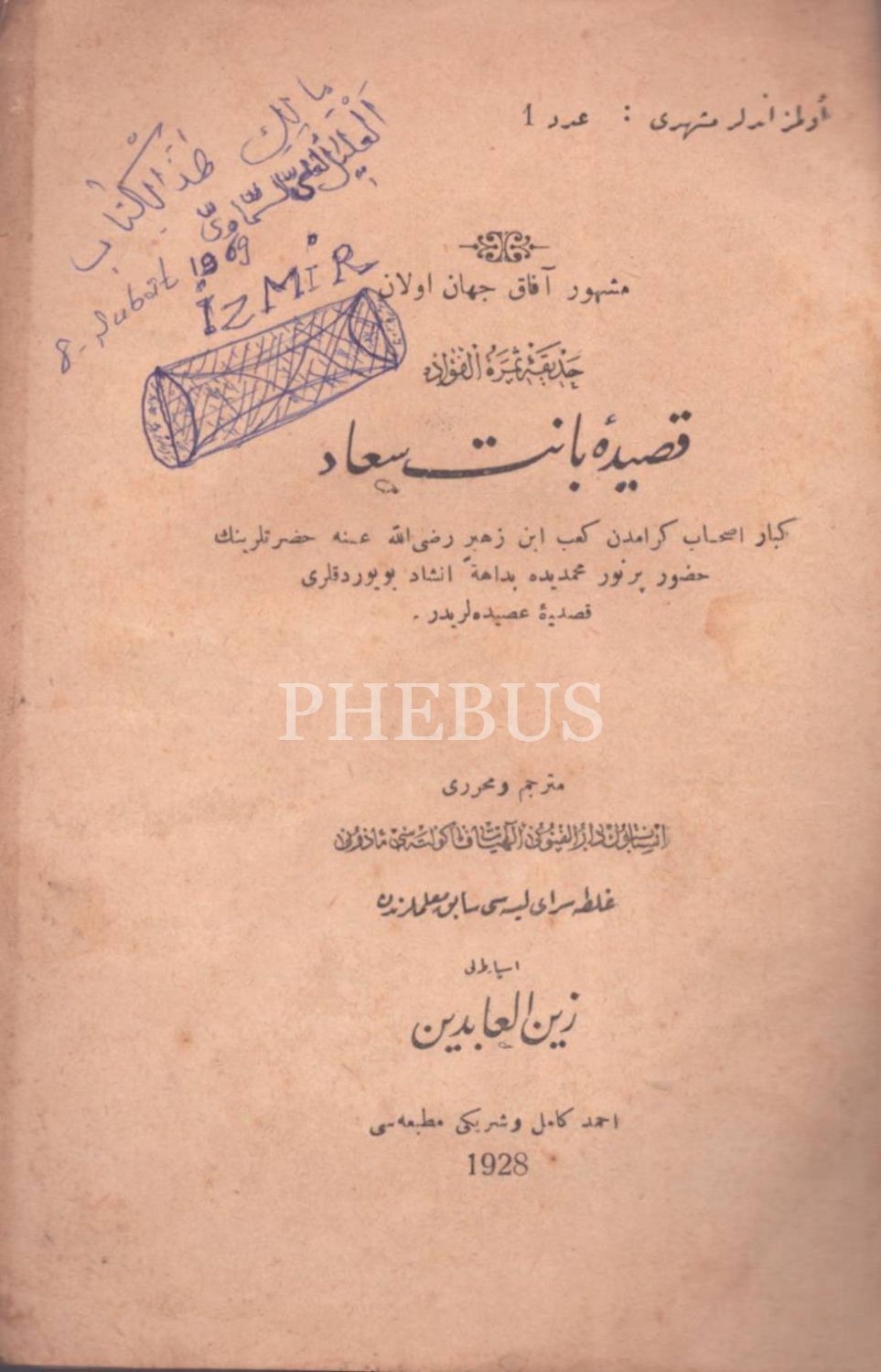 HADÎKA-İ SEMERETÜ´L-FUÂD KASÎDE-İ BÂNET SÜÂD, çev. Ispartalı Zeynelabidin, Ahmed Kâmil ve Şeriki Matbaası, 1928, 50+6 s., 14x19 cm