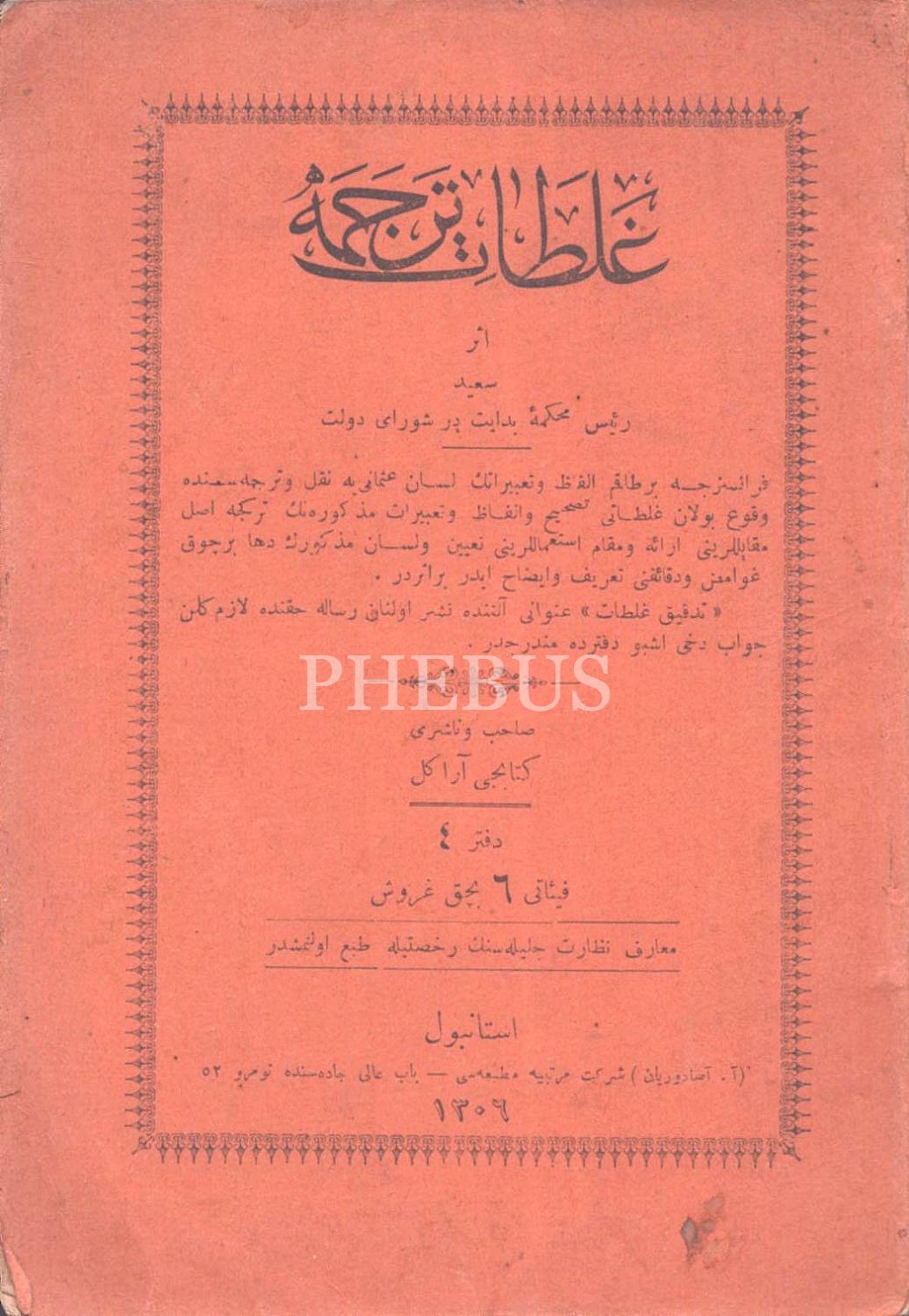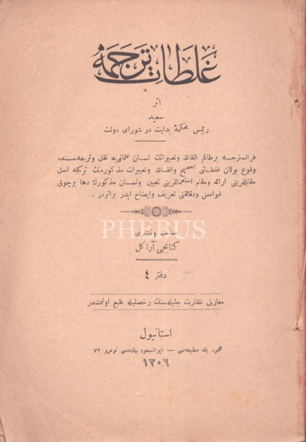 GALATÂT-I TERCÜME (4. Defter), Said, A. Asaduryan Şirket-i Mürettibiye Matbaası, İstanbul 1306, 171 ilâ 297. sayfalar, 13x19 cm