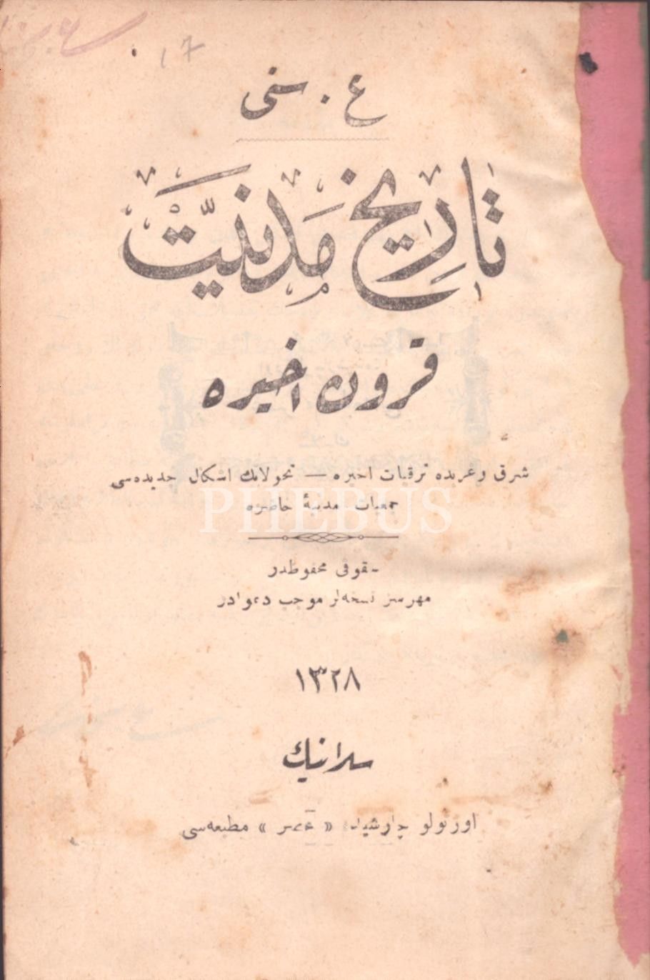 TÂRÎH-İ MEDENİYYET (Kurûn-ı Ahîre), A. Sina, Asr Matbaası, Selanik 1328, 312 s., 13x18 cm