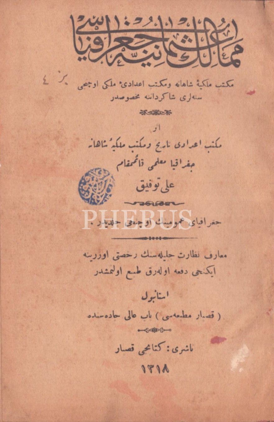 MEMÂLİK-İ OSMÂNİYYE COĞRAFYASI, Ali Tevfik, Kasbar Matbaası, İstanbul 1318, 479 s., 13x18 cm