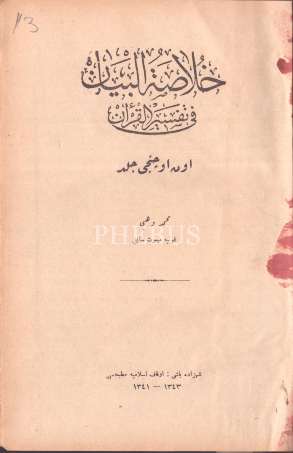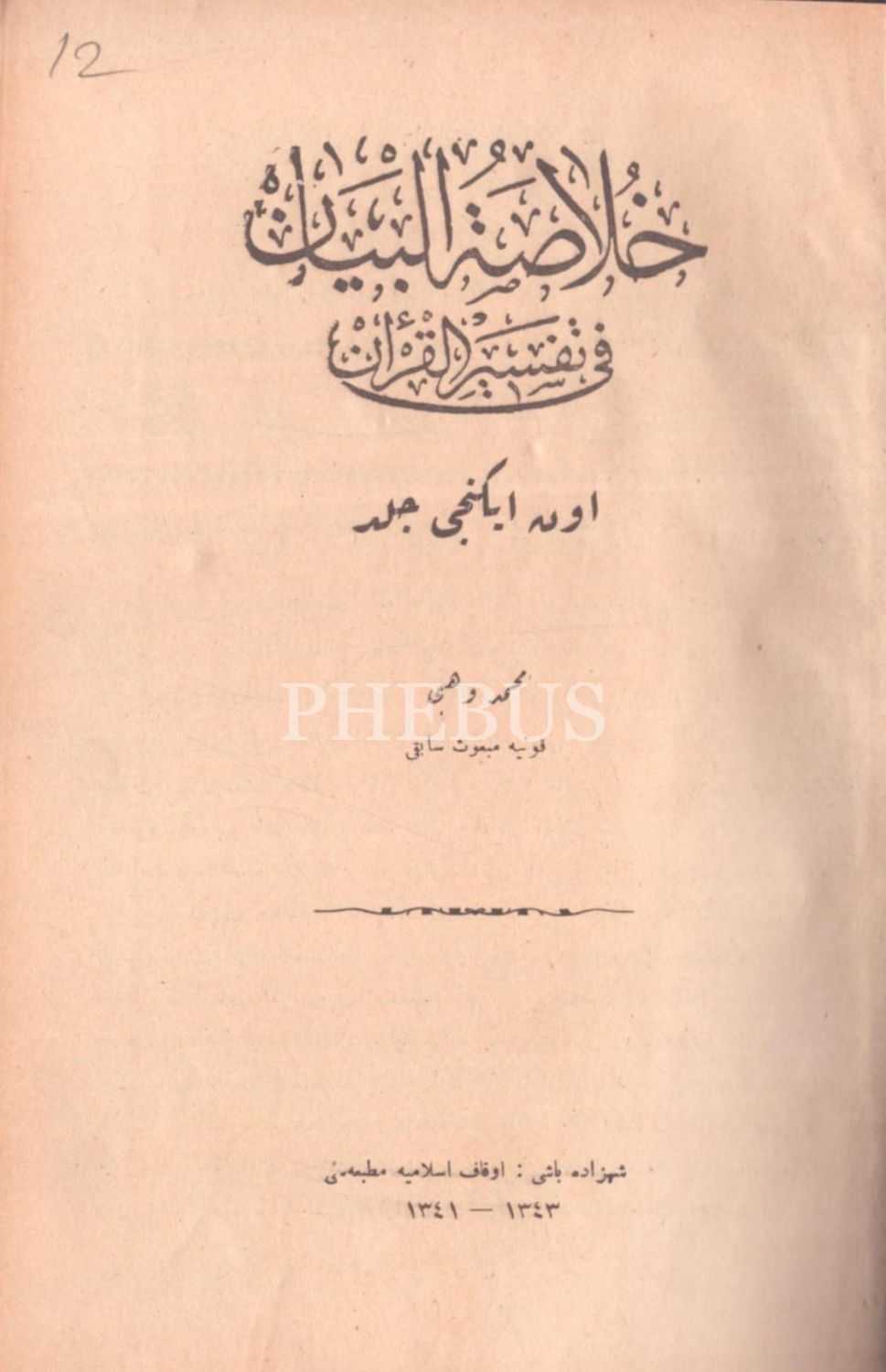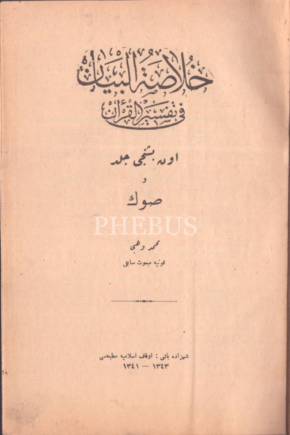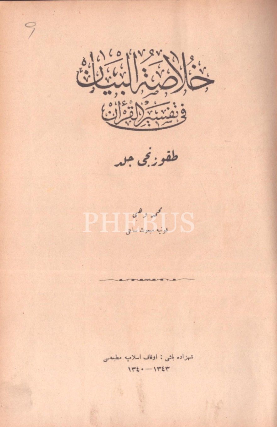HULÂSATÜ´L-BEYÂN FÎ TEFSÎRİ´L-KUR´ÂN (14. cilt hariç 15 cilt takım), Mehmed Vehbi, Evkaf-ı İslamiye Matbaası & Âmedi Matbaası, İstanbul 1340-43, 17x24 cm