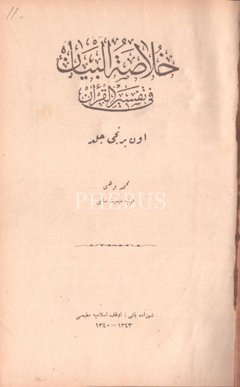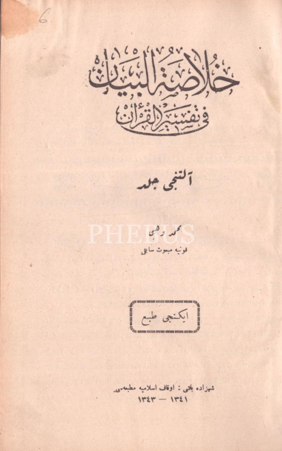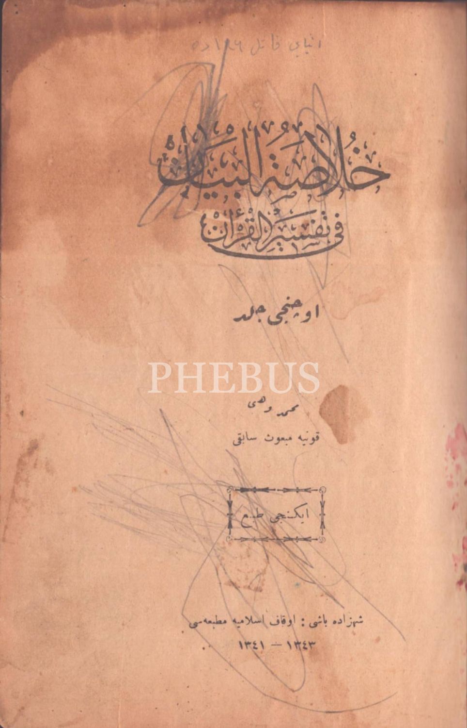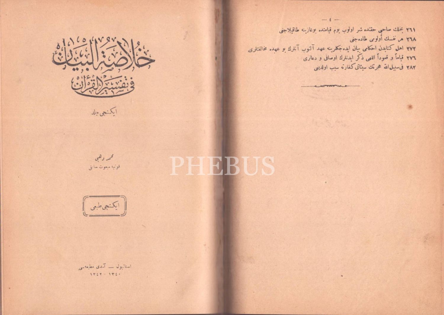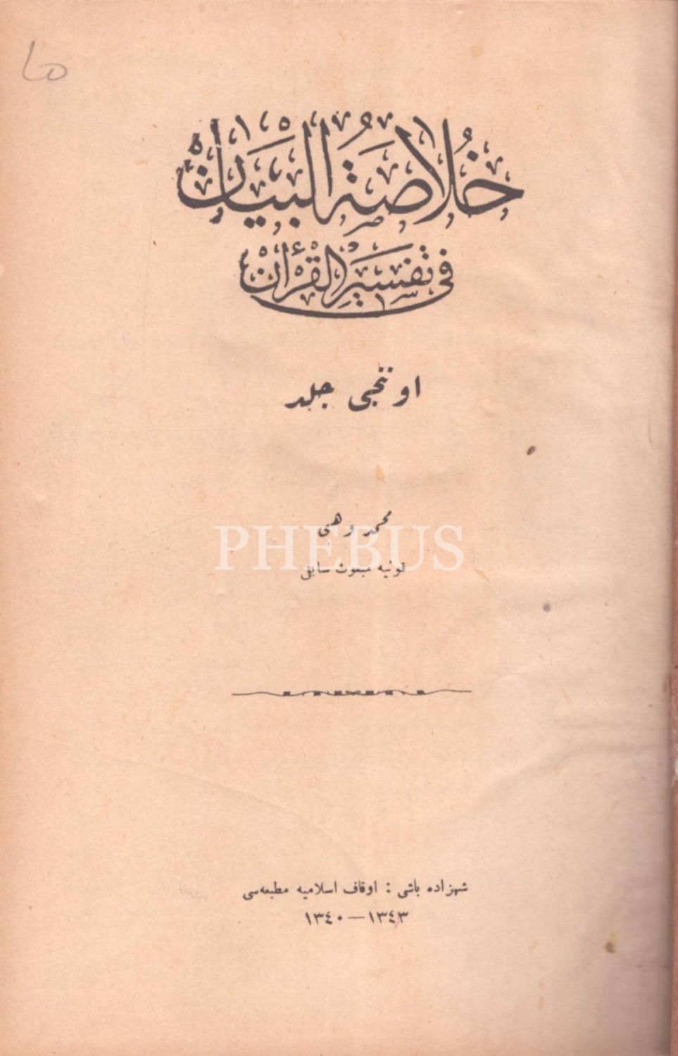 HULÂSATÜ´L-BEYÂN FÎ TEFSÎRİ´L-KUR´ÂN (14. cilt hariç 15 cilt takım), Mehmed Vehbi, Evkaf-ı İslamiye Matbaası & Âmedi Matbaası, İstanbul 1340-43, 17x24 cm