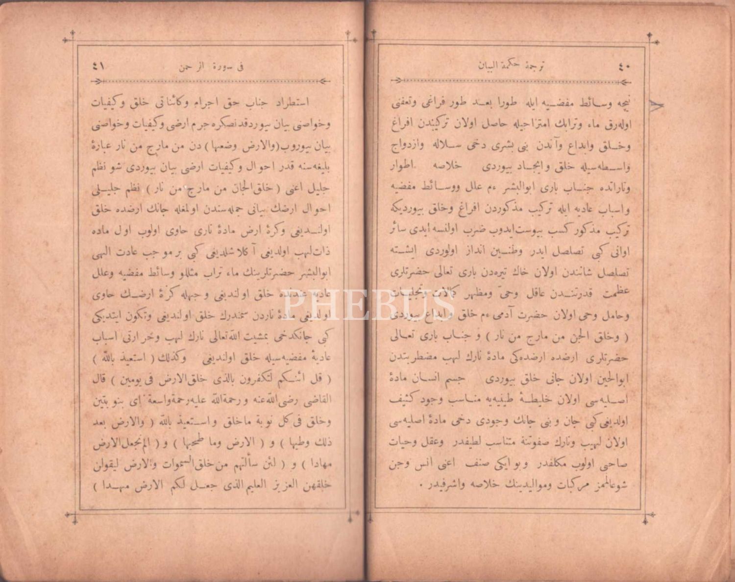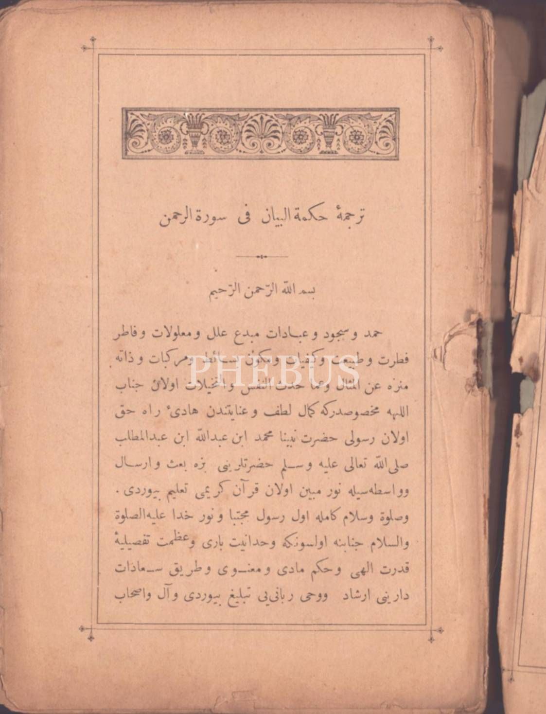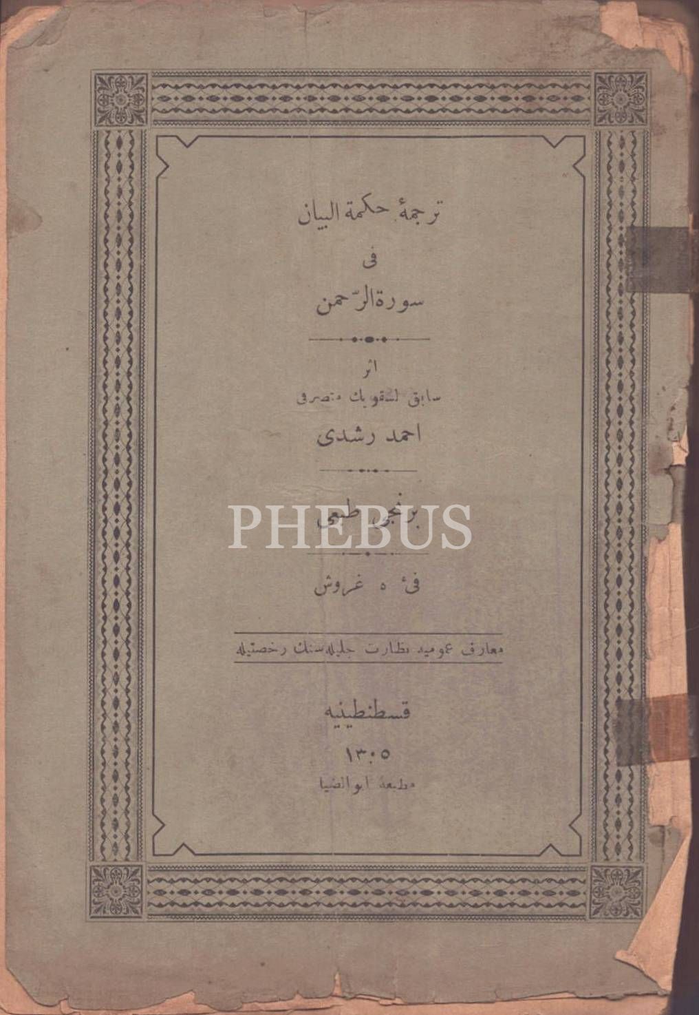 TERCÜME-İ HİKMETİ´L-BEYÂN FÎ SÛRETİ´R-RAHMÂN, Ahmed Rüşdi, Matbaa-i Ebuzziya, İstanbul 1305, 77 s., 14x19 cm