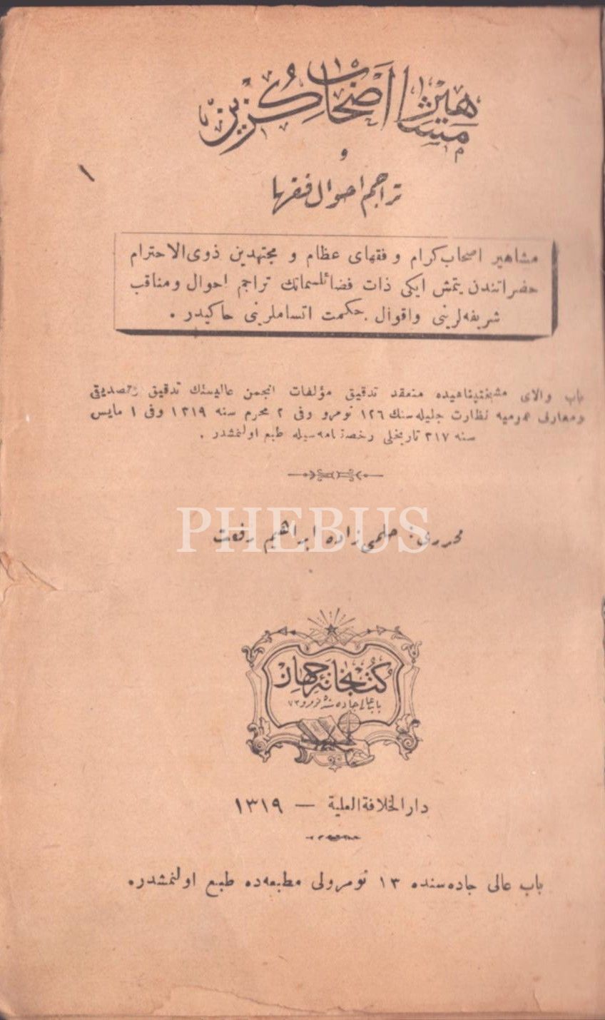 MEŞÂHÎR-İ ASHÂB-I GÜZÎN VE TERÂCİM-İ AHVÂL-İ FUKAHÂ, Hilmizâde İbrahim Rifat, Kütübhane-i Cihan, İstanbul 1319, 224 s., 13x18 cm