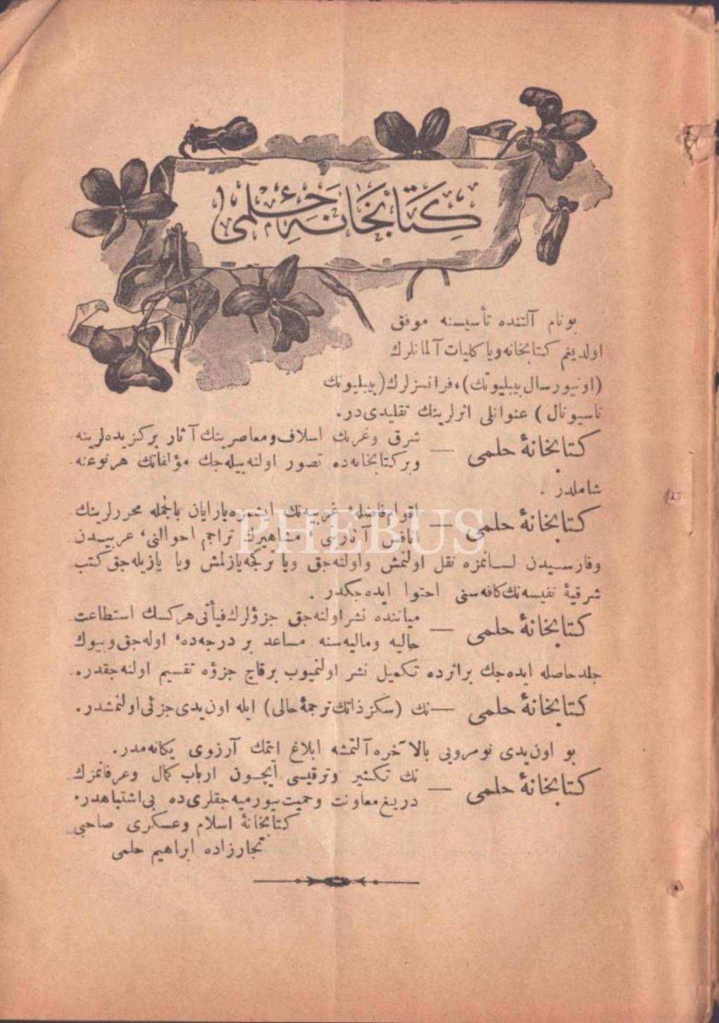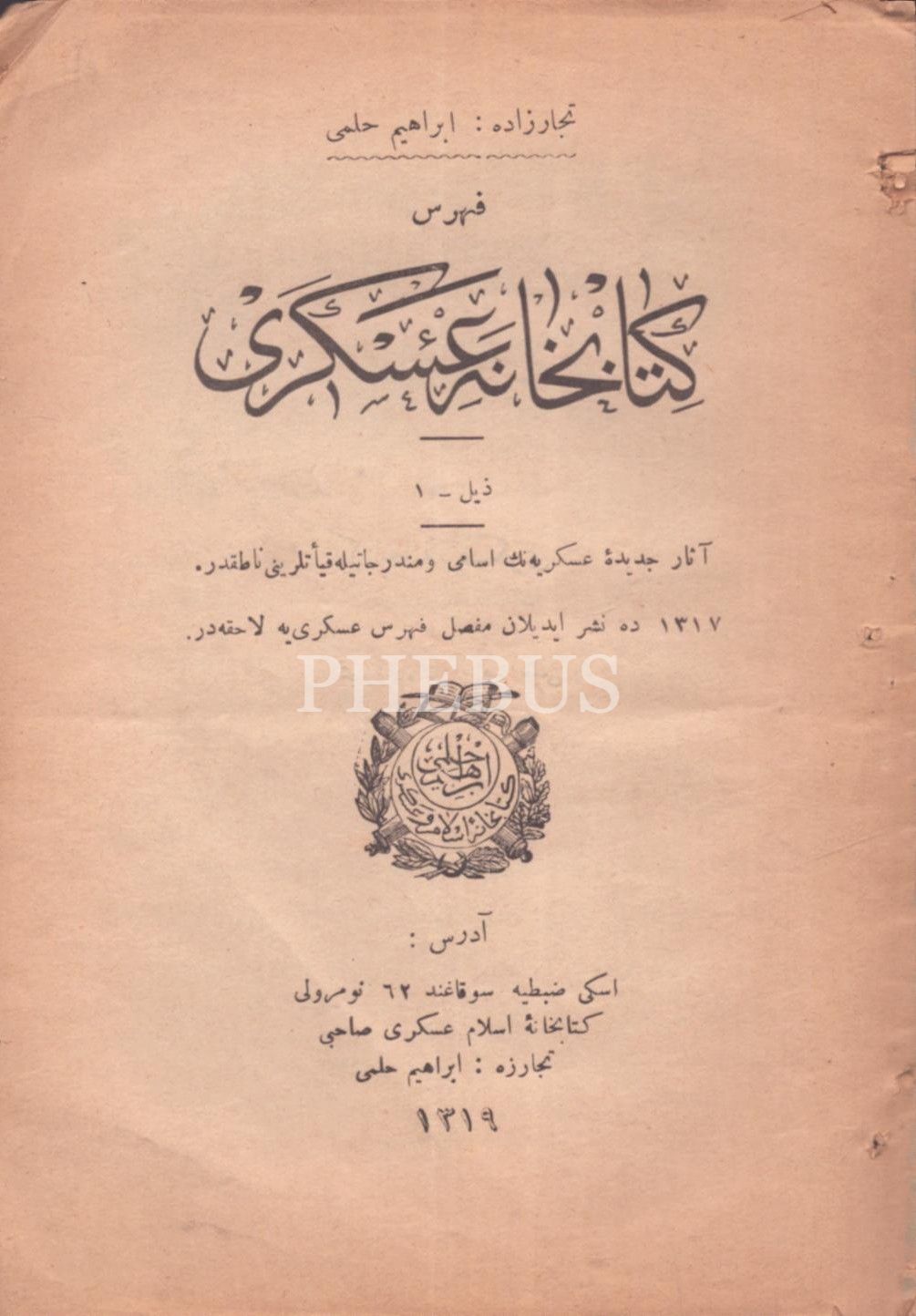 FİHRİS-İ KİTÂBHÂNE-İ ASKERÎ (Zeyl 1), Tüccarzâde İbrahim Hilmi, Kitabhane-i İslam ve Askerî, İstanbul 1319, 34 s., 13x18 cm