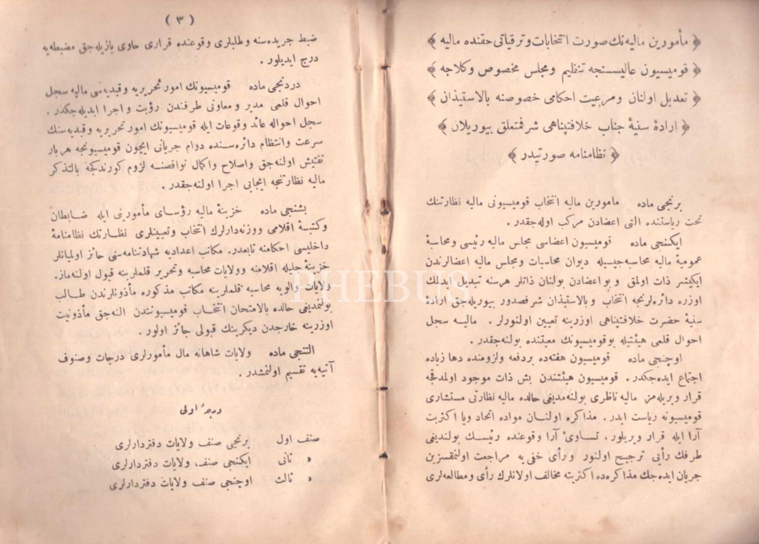 "Me´mûrîn-i Mâliyyenin Sûret-i İntihâbât ve Terakkiyâtı Hakkında Mâliyye Komisyon-ı Âlîsince Tanzîm ve Meclis-i Mahsûs ve Vükelâca Ta´dîl Olunan Mer´iyyet Ahkâmı Husûsuna Bilistîzân İrâde-i Seniyye-i Hazret-i Hilâfetpenâhî-şerefmüteallik Buyurulan Nizâmnâme Sûretidir"
