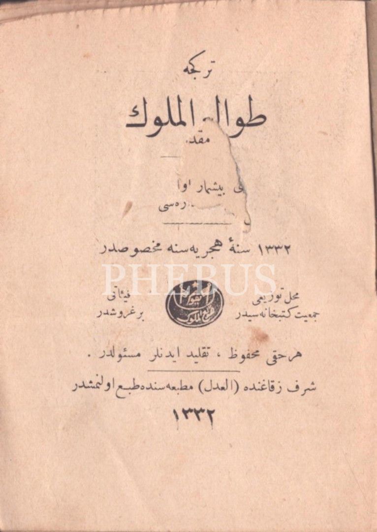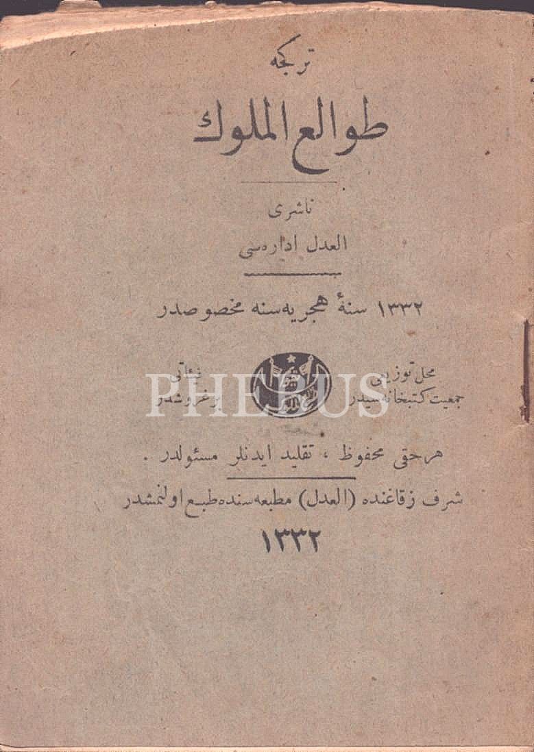 1332 Sene-i Hicriyyesine Mahsûs TÜRKCE TAVÂLİU´L-MÜLÛK, el-Adl Matbaası, 31 s., 10x14 cm