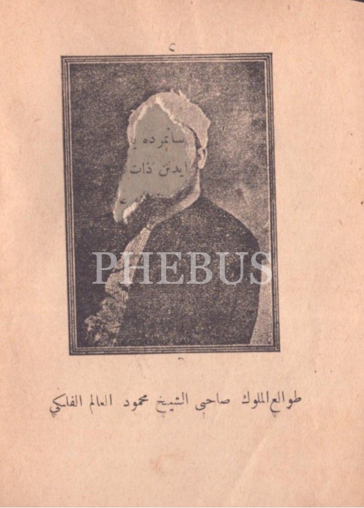 İç sayfada yer alan, Tavâliu´l-Mülûk sahibi eş-Şeyh Mahmud el-Âlim el-Felekî´nin görseldeki yüzü yırtılmıştır.