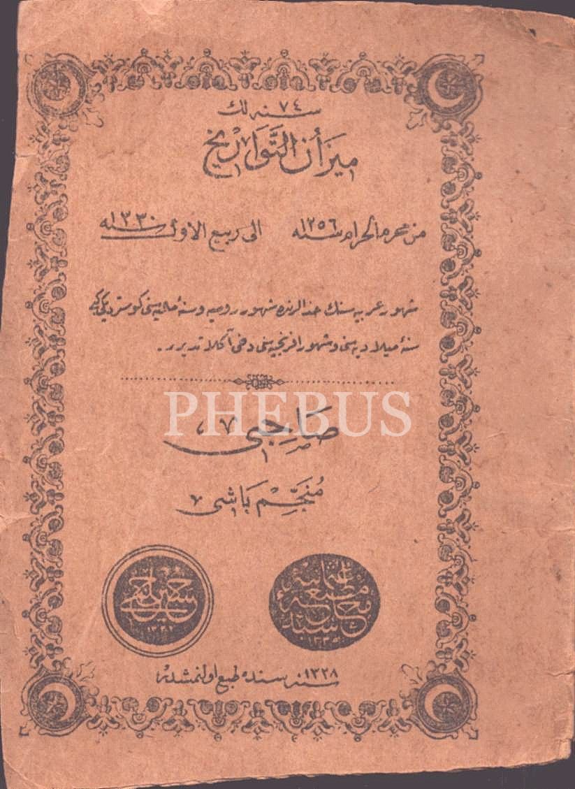 74 SENELİK MÎZÂNÜ´T-TEVÂRÎH (Muharrem 1256´dan Rebiülevvel 1330´a), sahibi: Müneccimbaşı, Matbaa-i Osmaniye 1328, 32 s., 10x14 cm