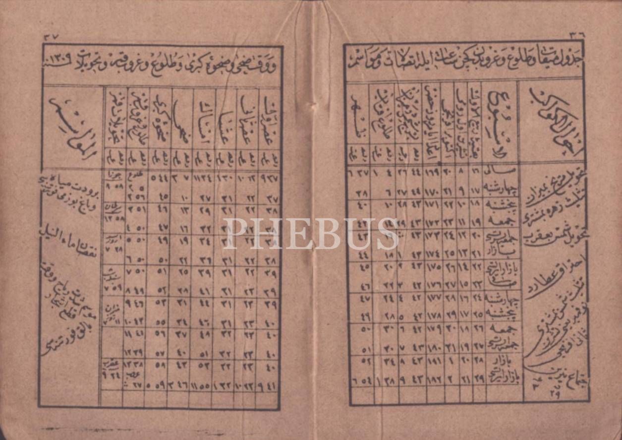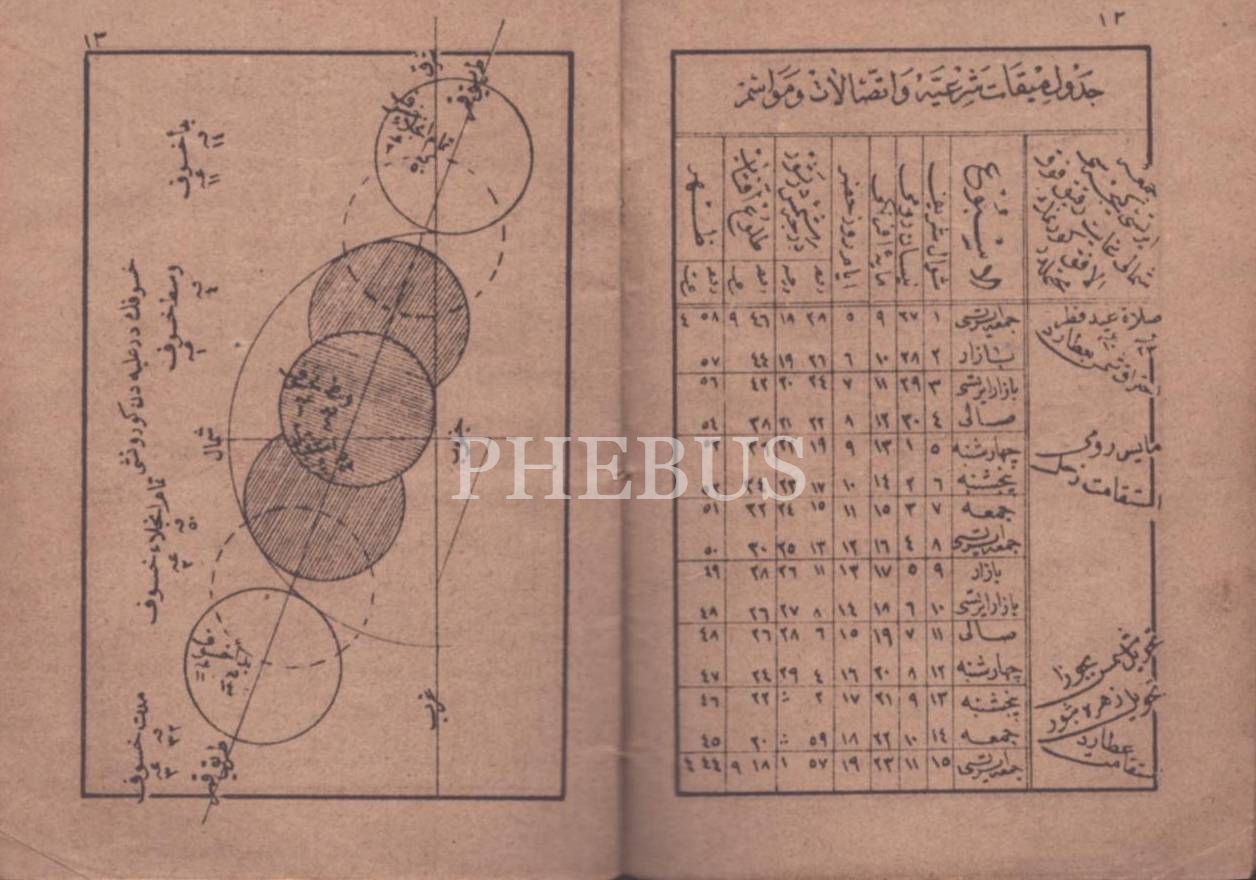 "Erba-ı ilm-i nücumdan atufetlü Mustafa Asım Beyefendi hazretlerinin kemter-i telamizinden Zihteli İdris Efendi´nin tertib-kerdesi olan Takvîm-i Ekmel´dir" Ön kapak sayfası yırtıktır.
