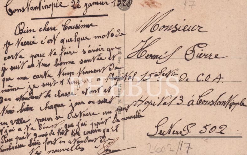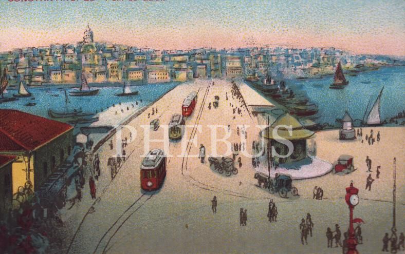 Galata Köprüsü, tramvay ve faytonlar görselli nadir İtalyan baskı,arkası Fransızca yazılı