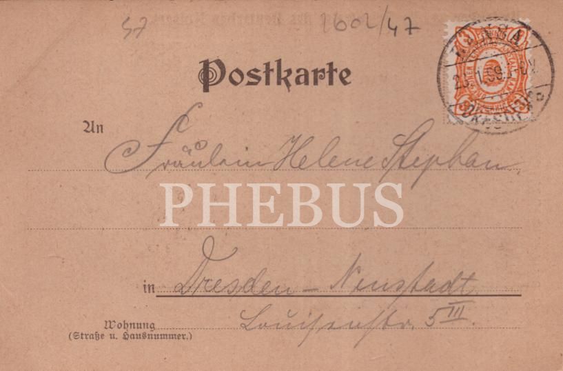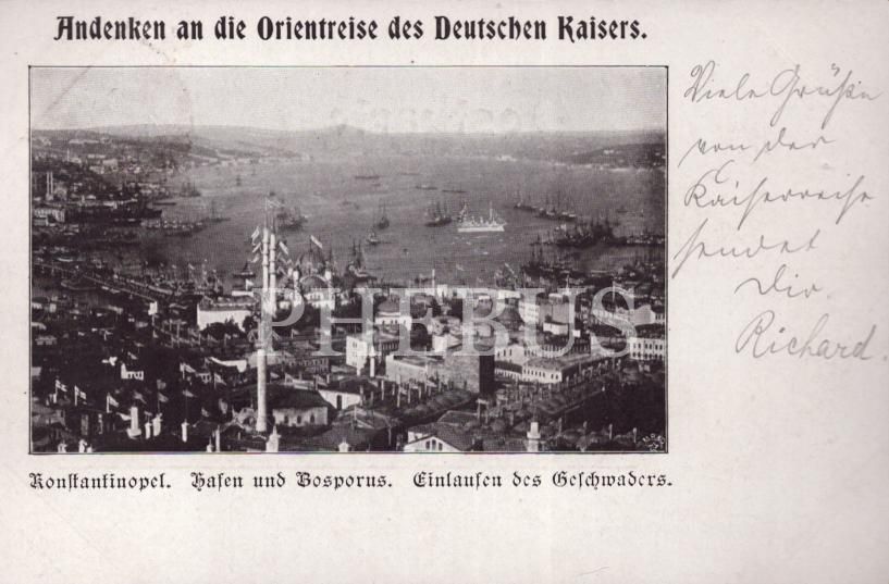 1899 yılında son Alman İmparatoru Kayzer II. Wilhelm´in ziyareti için hazırlanan taşbaskı hatıra kartı, postadan geçmiş