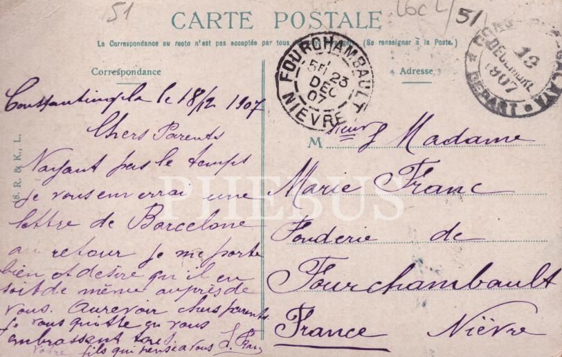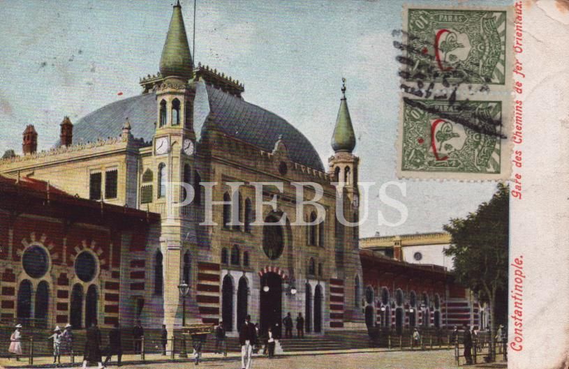 Sirkeci Tren Garı, önden eski tip ve Fransa varış damgalı kartpostal