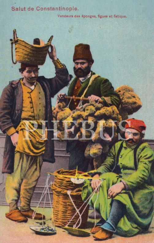 Meslek kartpostalı; sünger, incir ve fıstık satıcıları