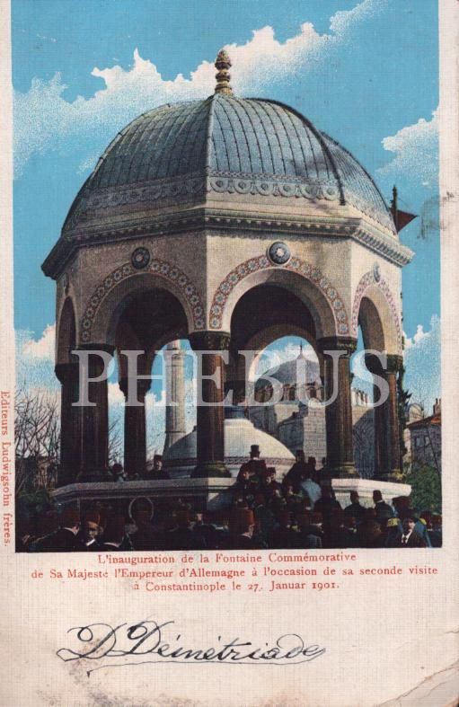 1901 yılında son Alman İmparatoru Kayzer II. Wilhelm´in ziyareti ve Alman Çeşmesi´nin açılışı, Osmanlı eski tip damgalı ed. Ludwigsohn Freres, postadan geçmiş