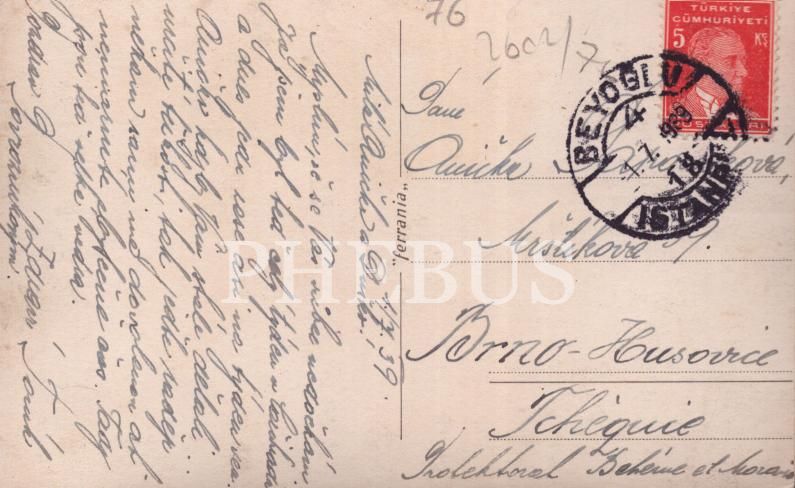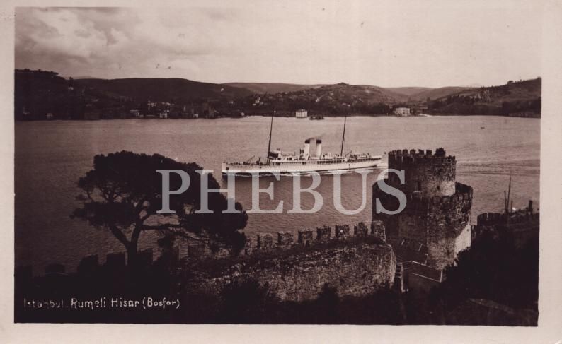 Romanya gemisi İstanbul Boğazı´nın en dar noktası Rumelihisarı ve Anadoluhisarı arasındaki bölgede, 1939 tarihli Atatürk pul ile Çekoslavakya´ya yollanmış kart, 9x14 cm