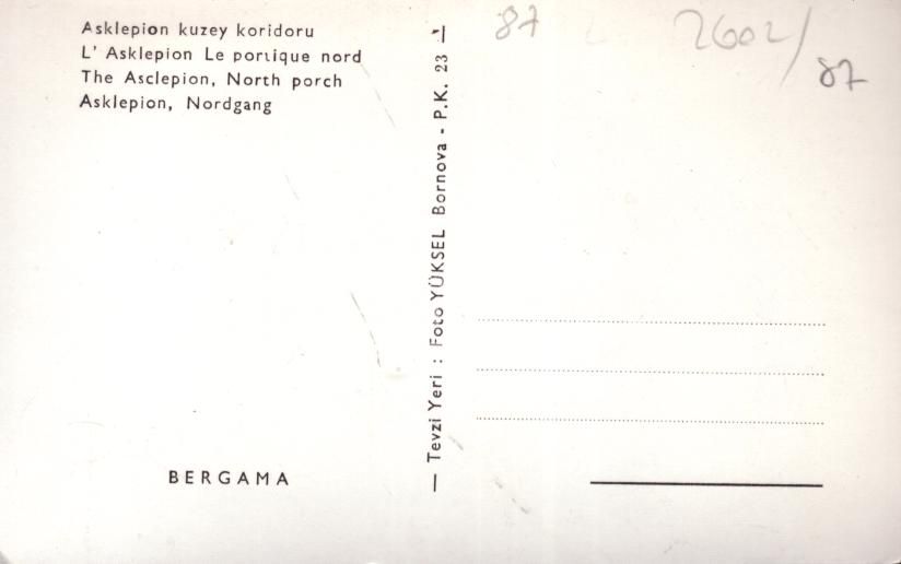 Asklepion kuzey koridoru, Foto Yüksel, 9x14 cm
