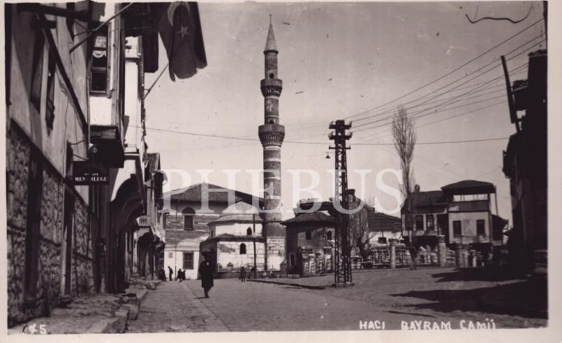 Ankara Hacı Bayram Cami, solda Zabıta-i Belediye Merkez Memurluğu tabelası, 9x14 cm