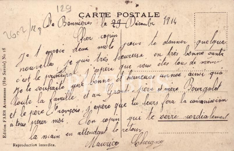 I. Dünya Savaşı İttifak kartpostalı, çok nadir, ed. Farb Annemase, arkası Fransızca yazılı
