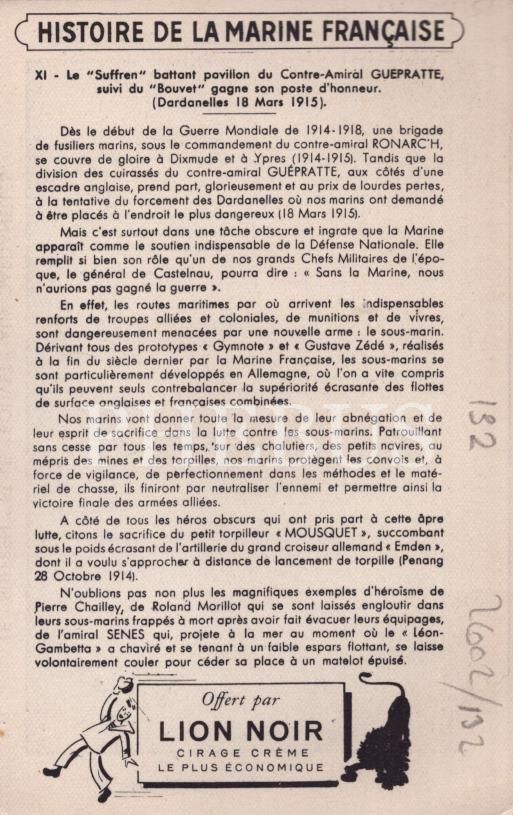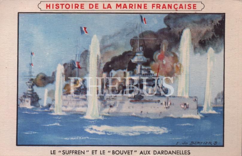 I. Dünya Savaşı Çanakkale Cephesi´nde batırılan Bouvet gemisi, arkası açıklamalı Fransızca kartpostal, ed. E. De Bertier