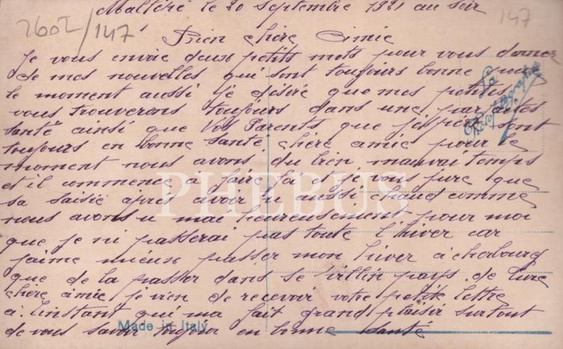 "Oryantal Güzellik" [Osmanlı Kadını], arkası Fransızca yazılı İtalyan baskı kartpostal