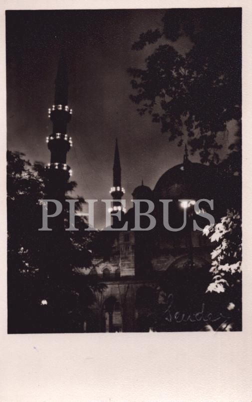Kandilleri yanan minarleriyle İstanbul Yeni Valide Cami, Foto Sender, 9x14 cm
