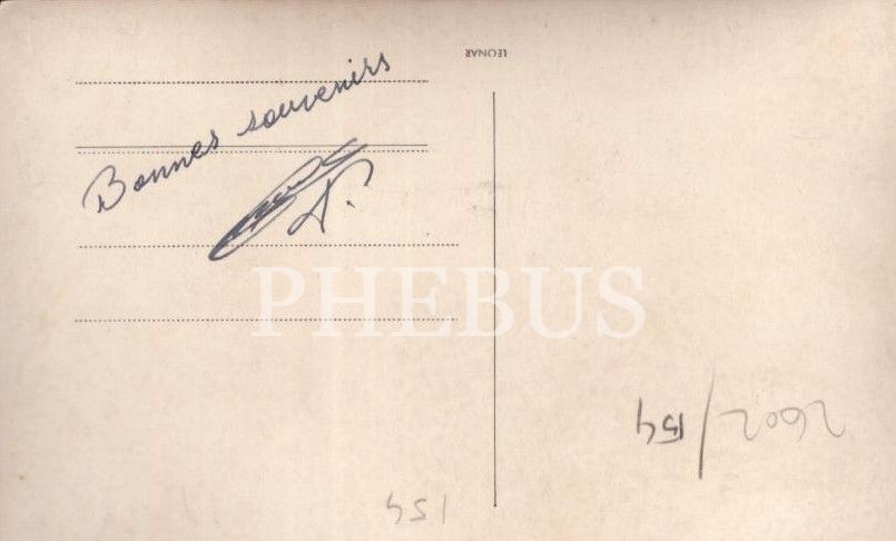 Fotoğrafın arkasında; "Bonnes Souvenirs" [Güzel Anılar] yazılı ve imzalı
