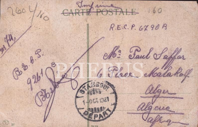Tophane, ed. M.J.C., 1 Ekim 1921 tarihli ve postadan geçmiş