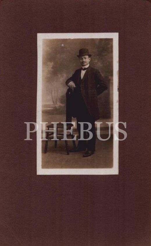 Şık giyimli Yahudi beyefendinin karton üzerine yapıştırılmış kabin fotoğrafı, 5x8 cm