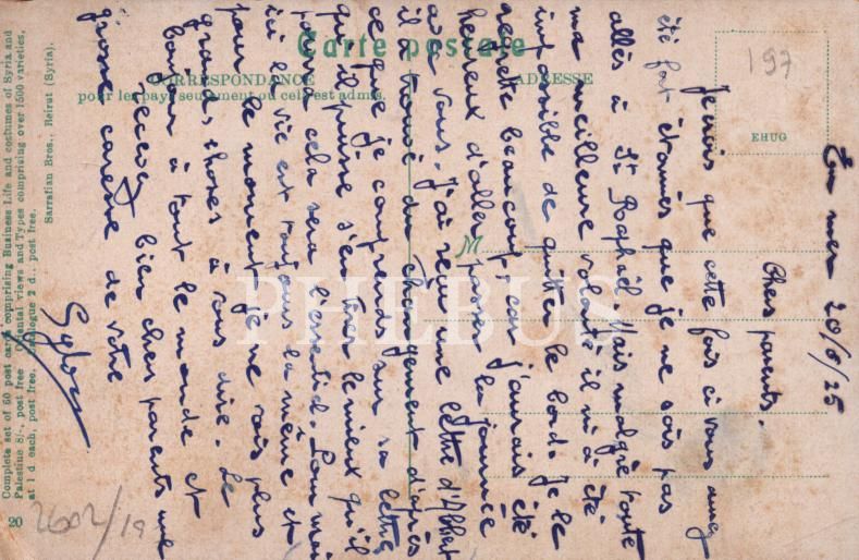 Beyrut Amerikan Üniversitesi´nden, bakış, Ermeni editör Sarrafian Bros/Suriye, arkası Fransızca yazılı ve 1925 tarihli