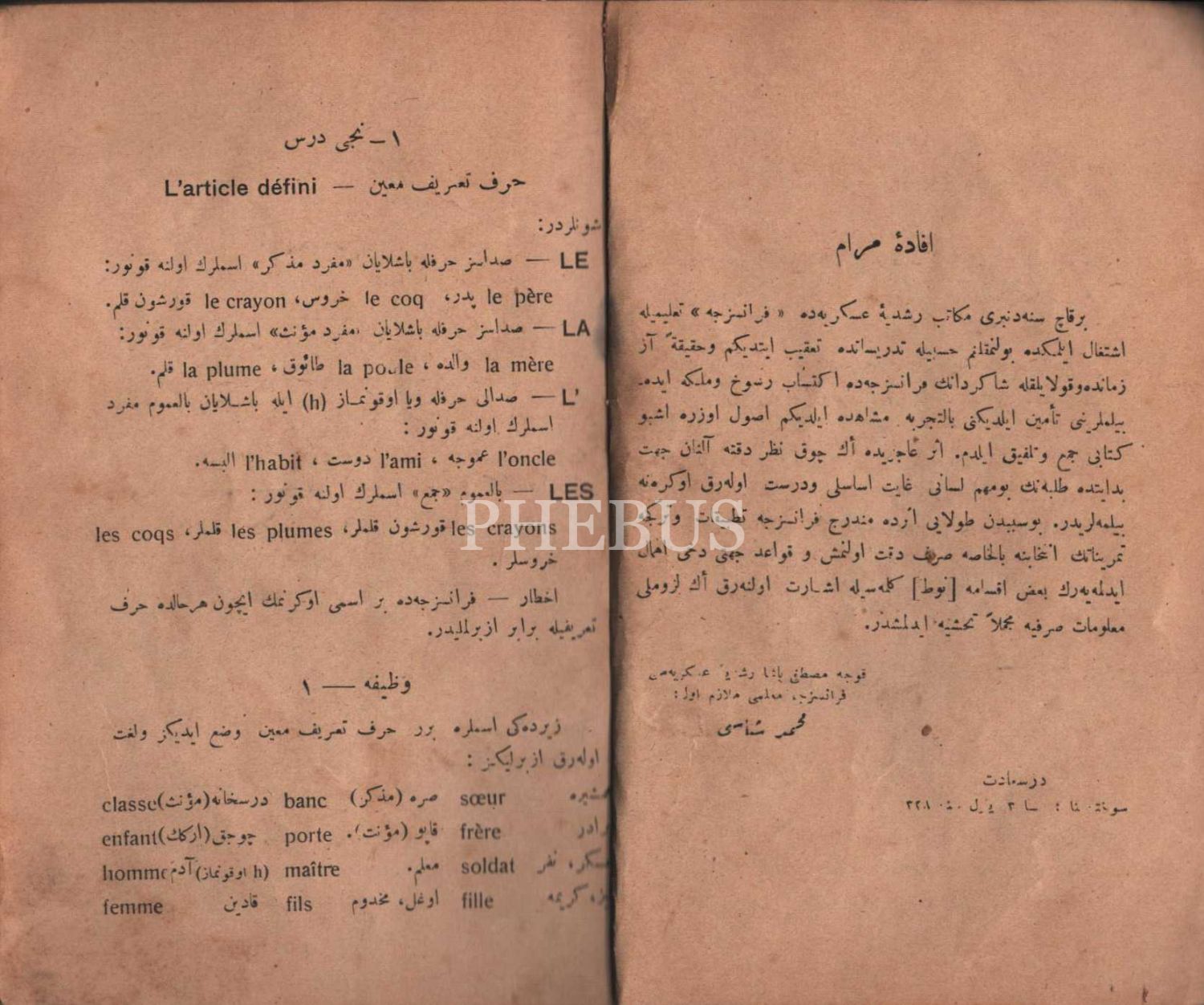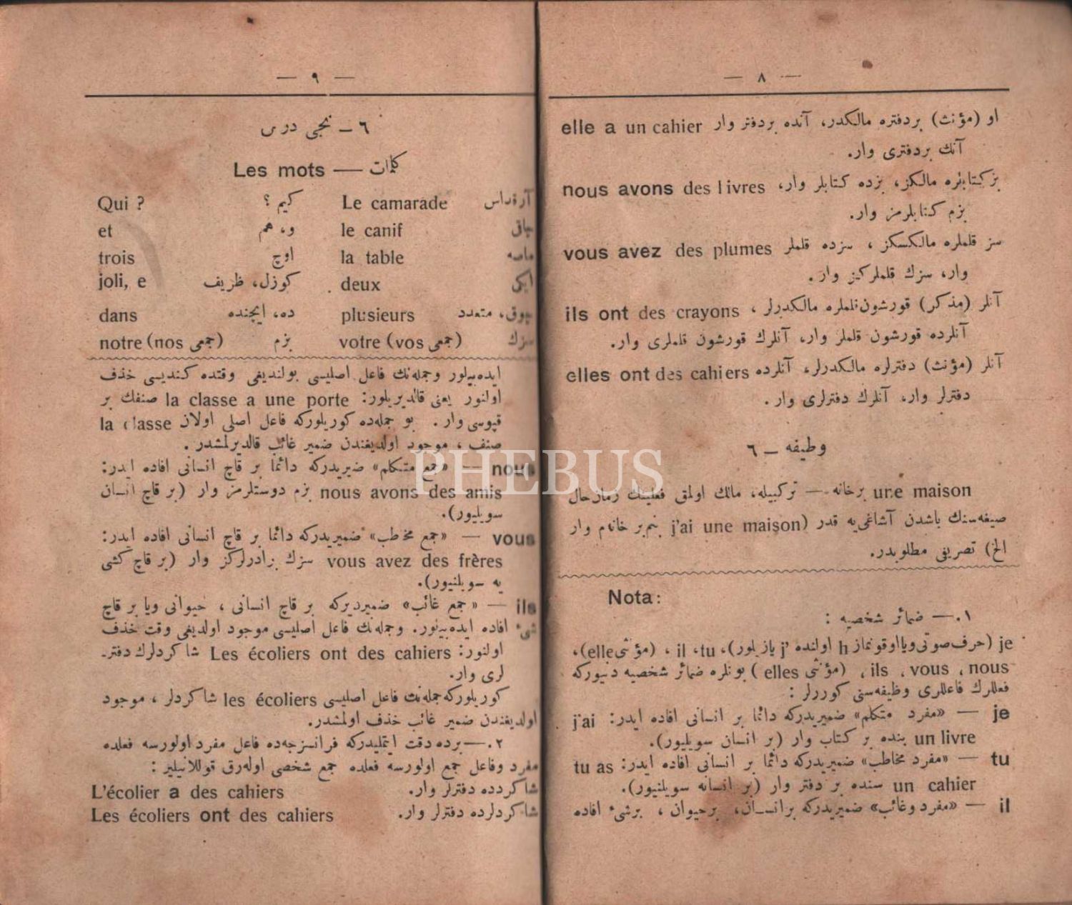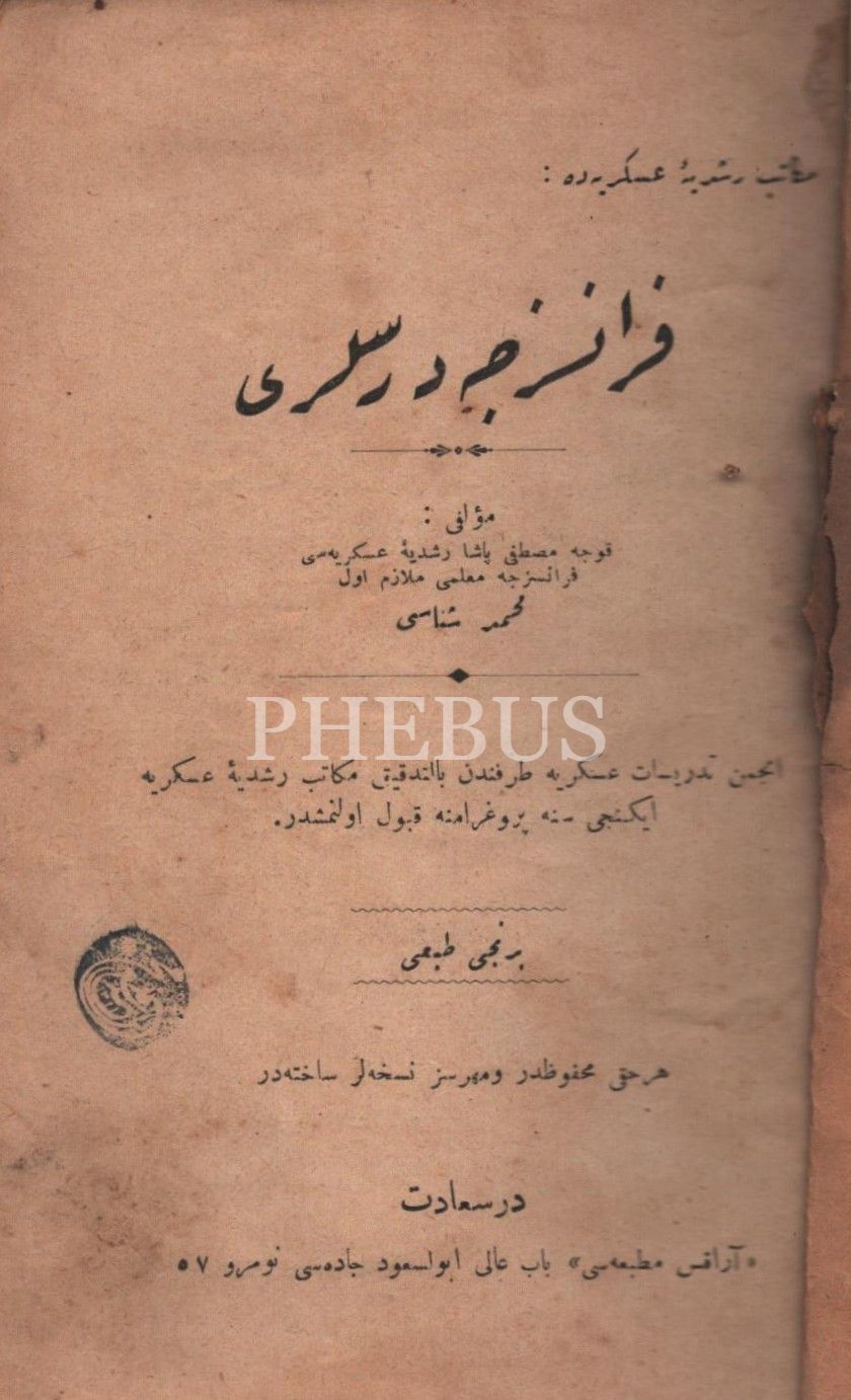 FRANSIZCA DERSLERİ, Mehmed Şinasi, Araks Matbaası, İstanbul 1328, 79 sayfa, 12x18 cm…