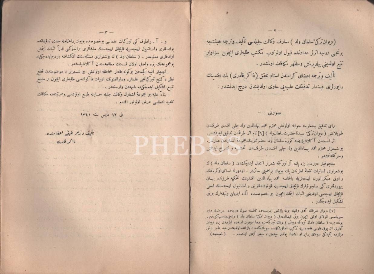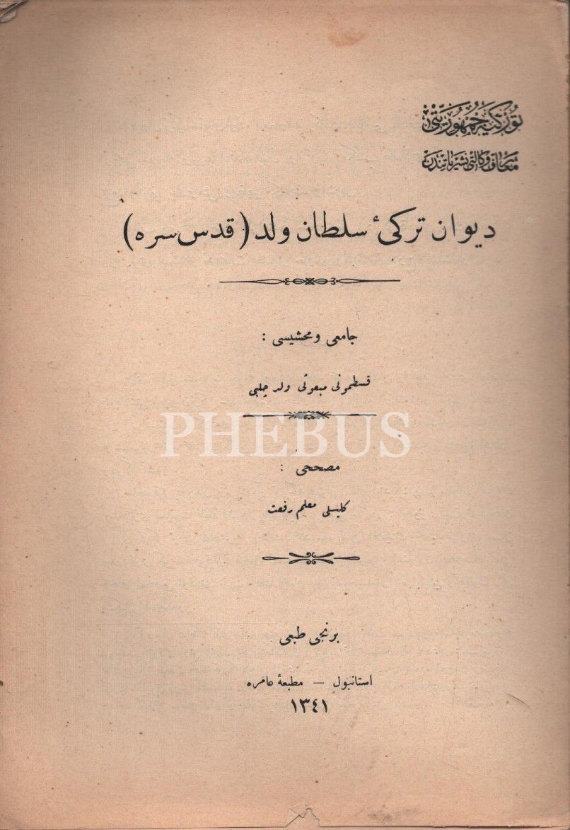 DÎVÂN-I TÜRKÎ-İ SULTÂN VELED (K. S.), derleyen ve haşiyelendiren: Kastamonu Mebusu Veled Çelebi, tashih eden: Kilisli Muallim Rifat, Matbaa-i Amire, İstanbul 1341, 132 sayfa, 18x25 cm…