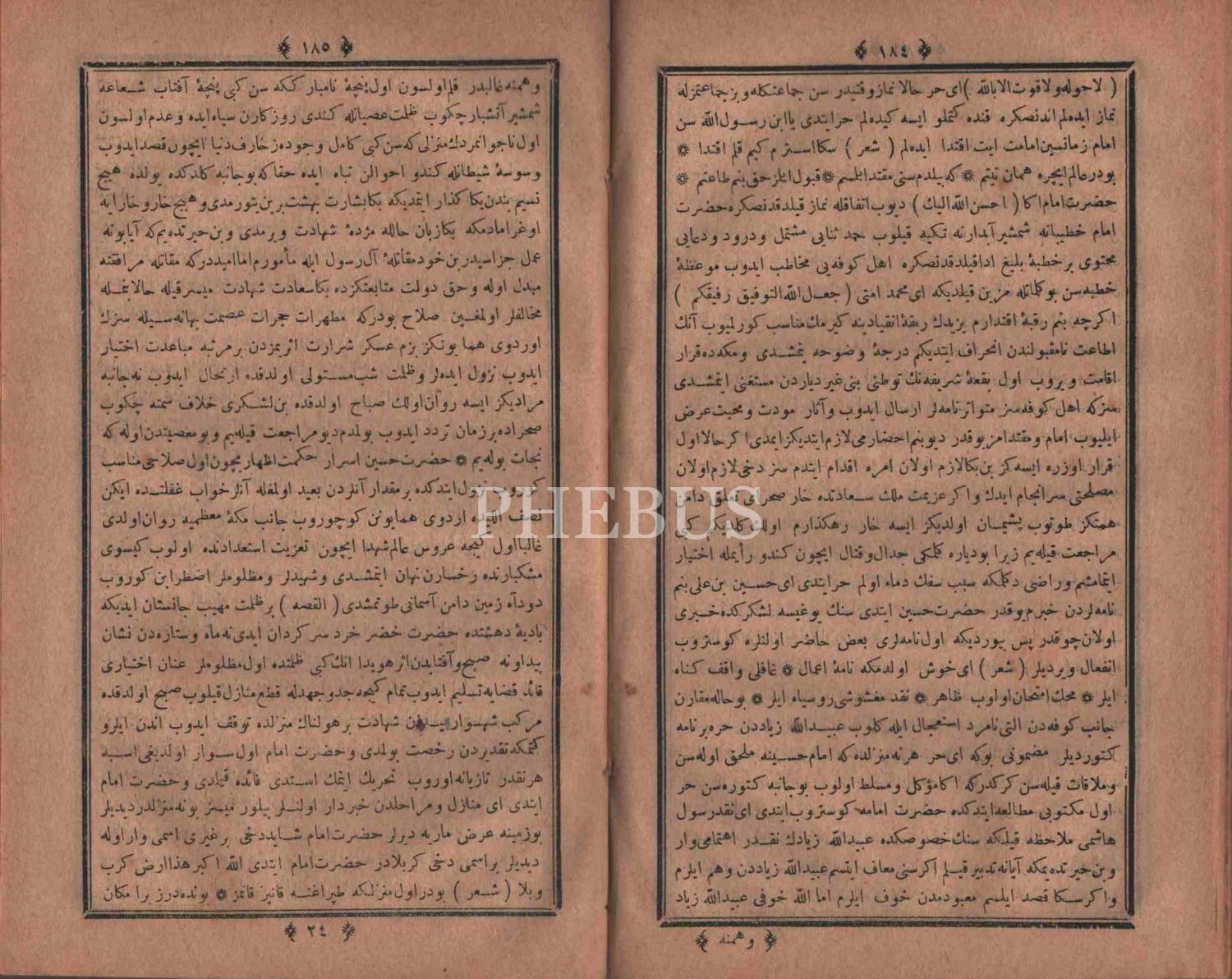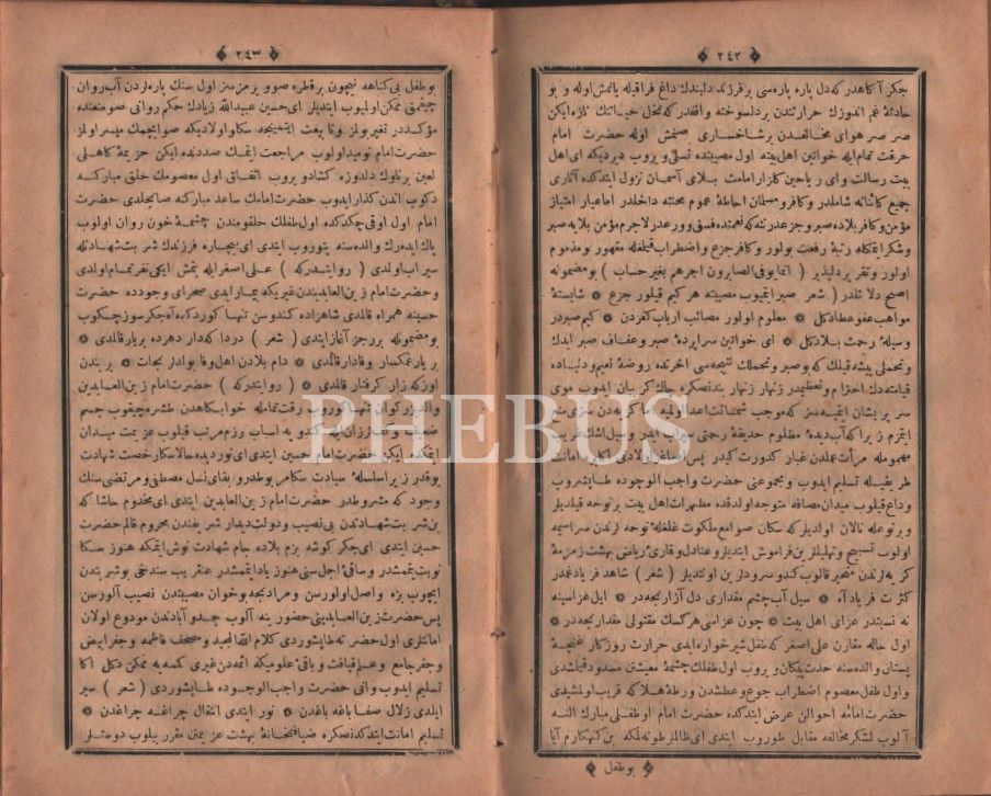 Kerbela olayının işlendiği mensur eser Hadikatu´s-Suada, Fuzuli´nin en hacimli eseri olup Fuzuli´nin inancına ve milliyetine dair bilgiler de içermektedir. / Kapağında ve kapağa yakın birkaç sayfasında kurt yeniği mevcuttur. Künye sayfası ayrıktır.