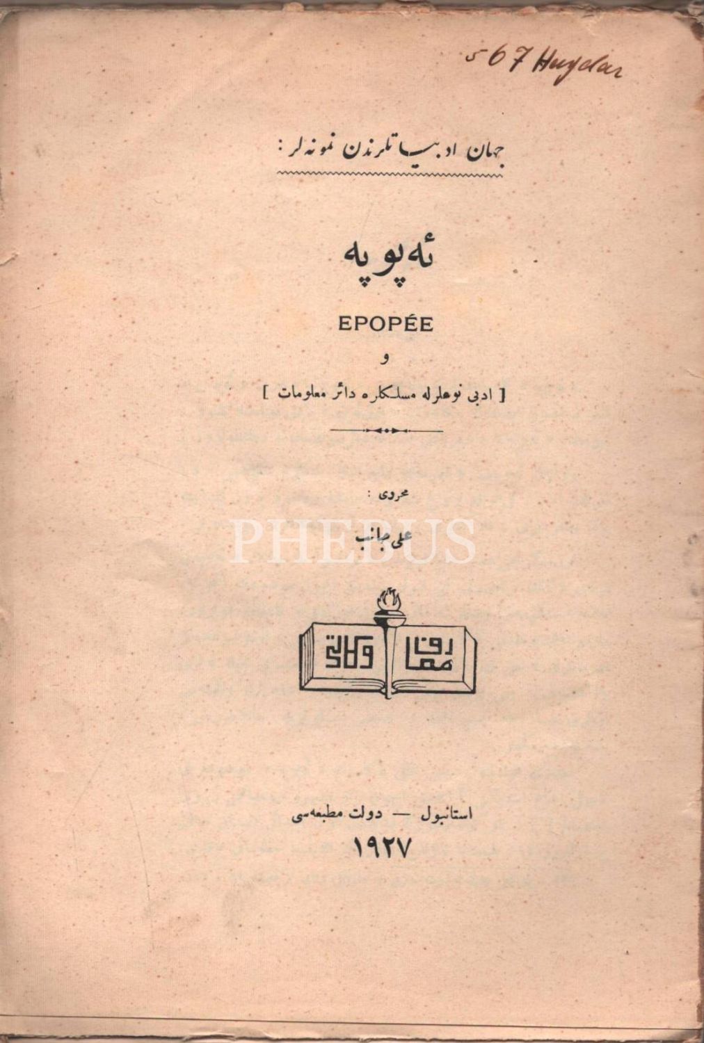 EPOPE VE EDEBÎ NEVLERLE MESLEKLERE DÂİR MA´LÛMÂT, Ali Canib [Yöntem], Devlet Matbaası, İstanbul 1927, 73 sayafa, 14x21 cm…