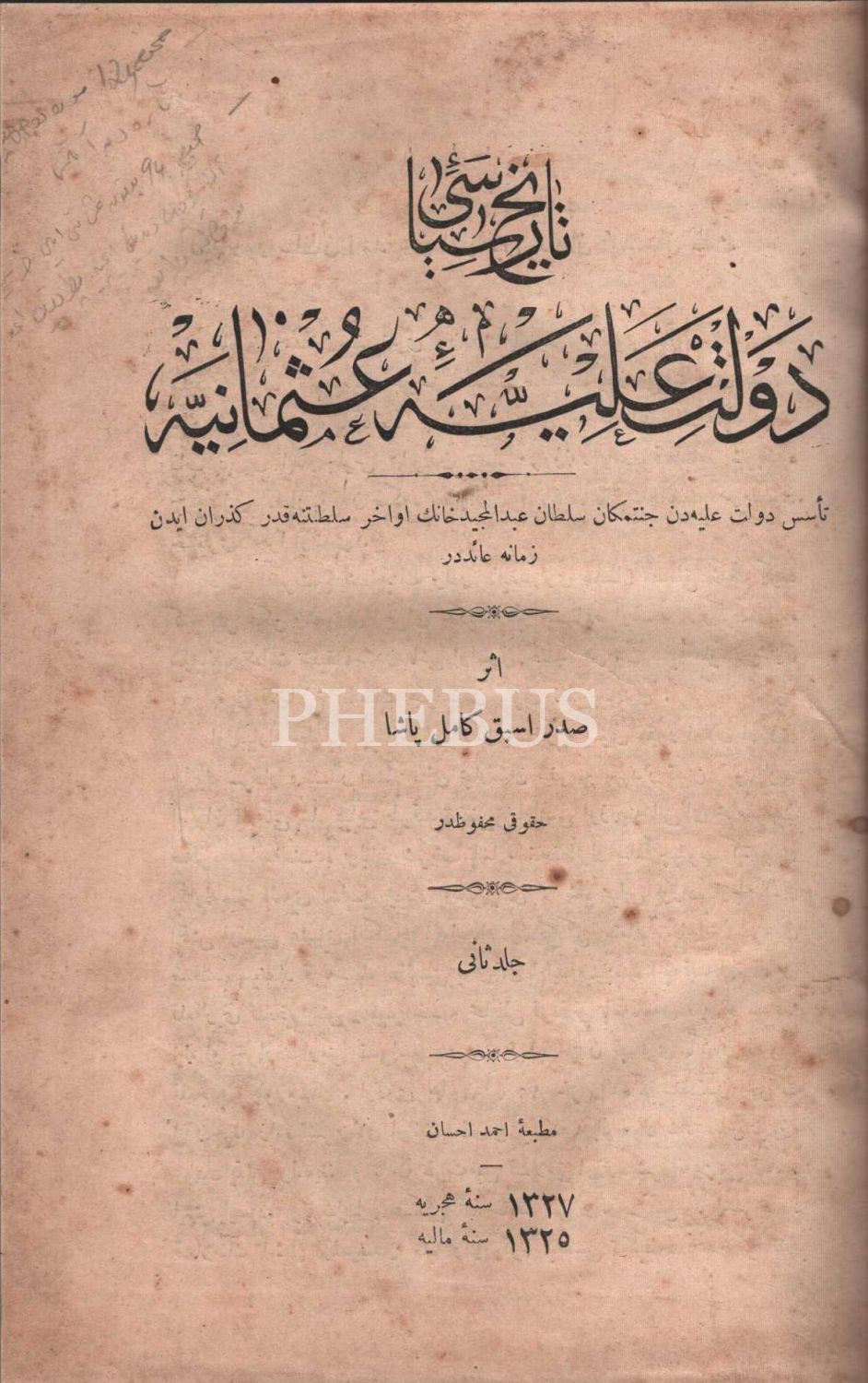TÂRÎH-İ SİYÂSÎ-İ DEVLET-İ ALİYYE-İ OSMÂNİYYE (2. Cilt), Kâmil Paşa, Matbaa-i Ahmed İhsan, 1327, 323 sayfa, 17x25 cm…