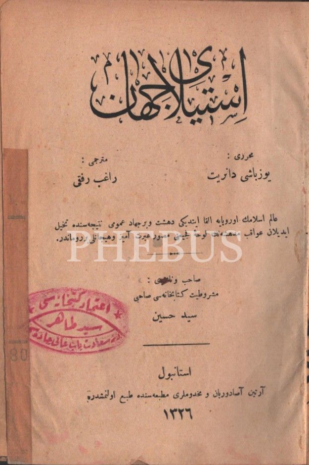 İSTÎLÂ-YI CİHÂN, Yüzbaşı Danryt, çev. Ragıb Rıfkı, Artin Asaduryan ve Mahdumları Matbaası, İstanbul 1326, 1036 sayfa, 15x20 cm…